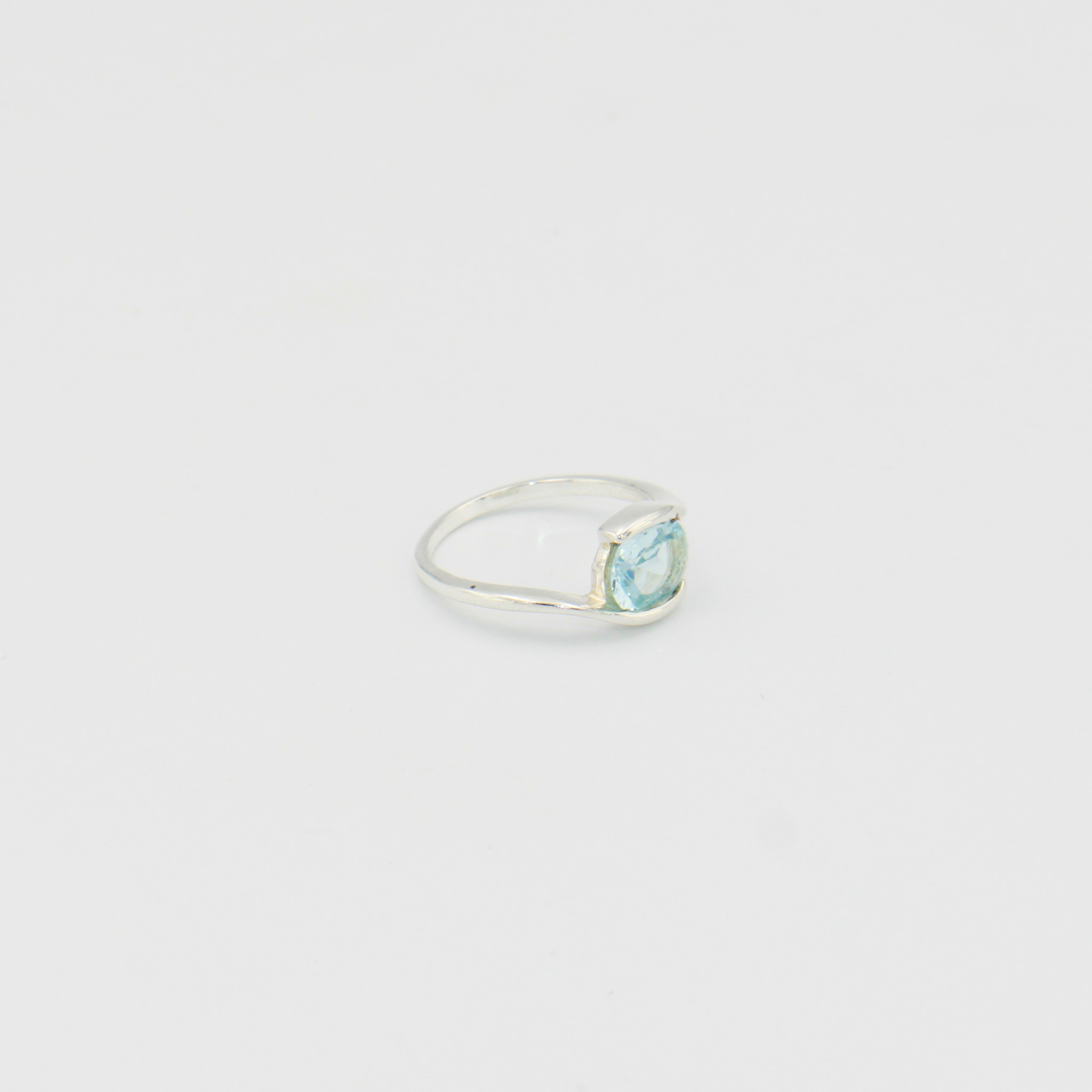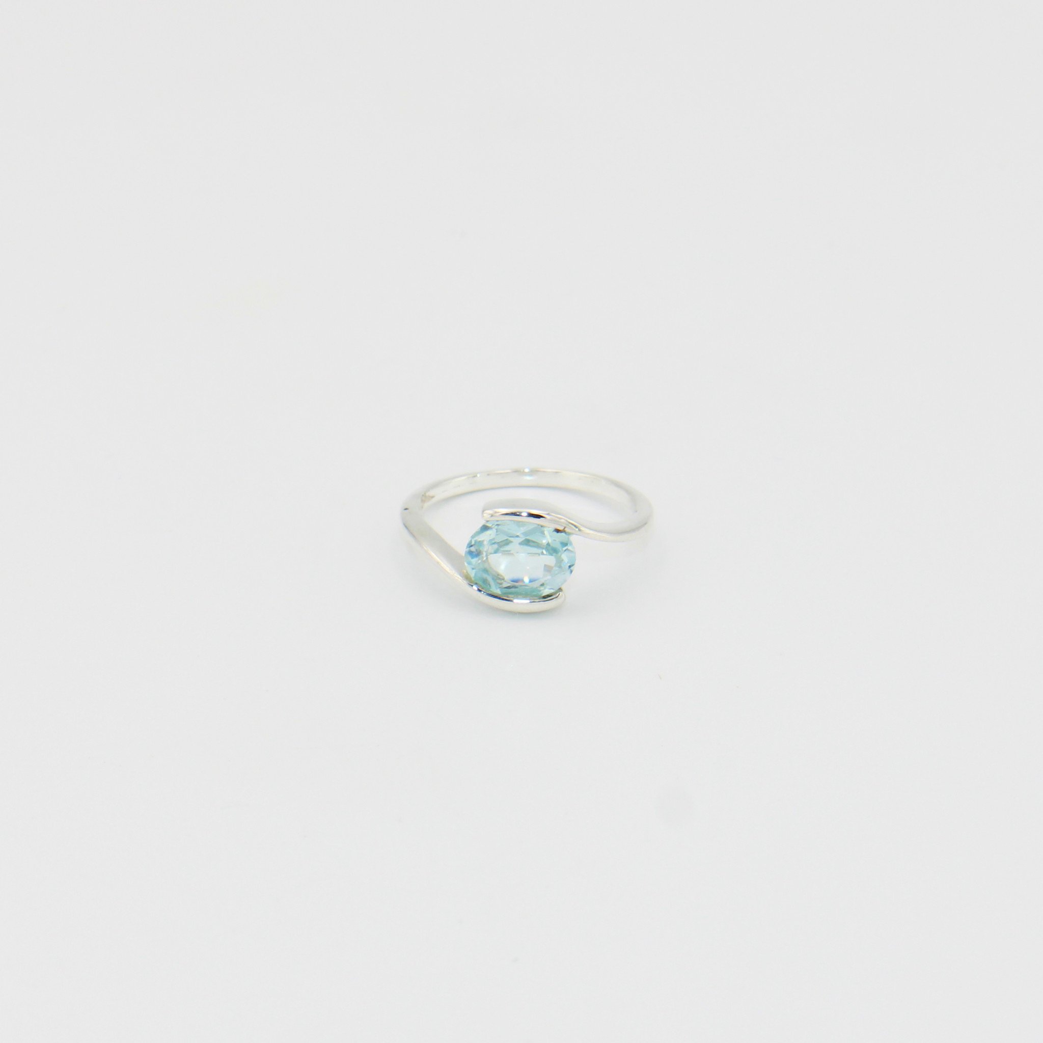 This sterling silver ring features a light blue oval Topaz. The bypass design is elegant and simple. Size 8