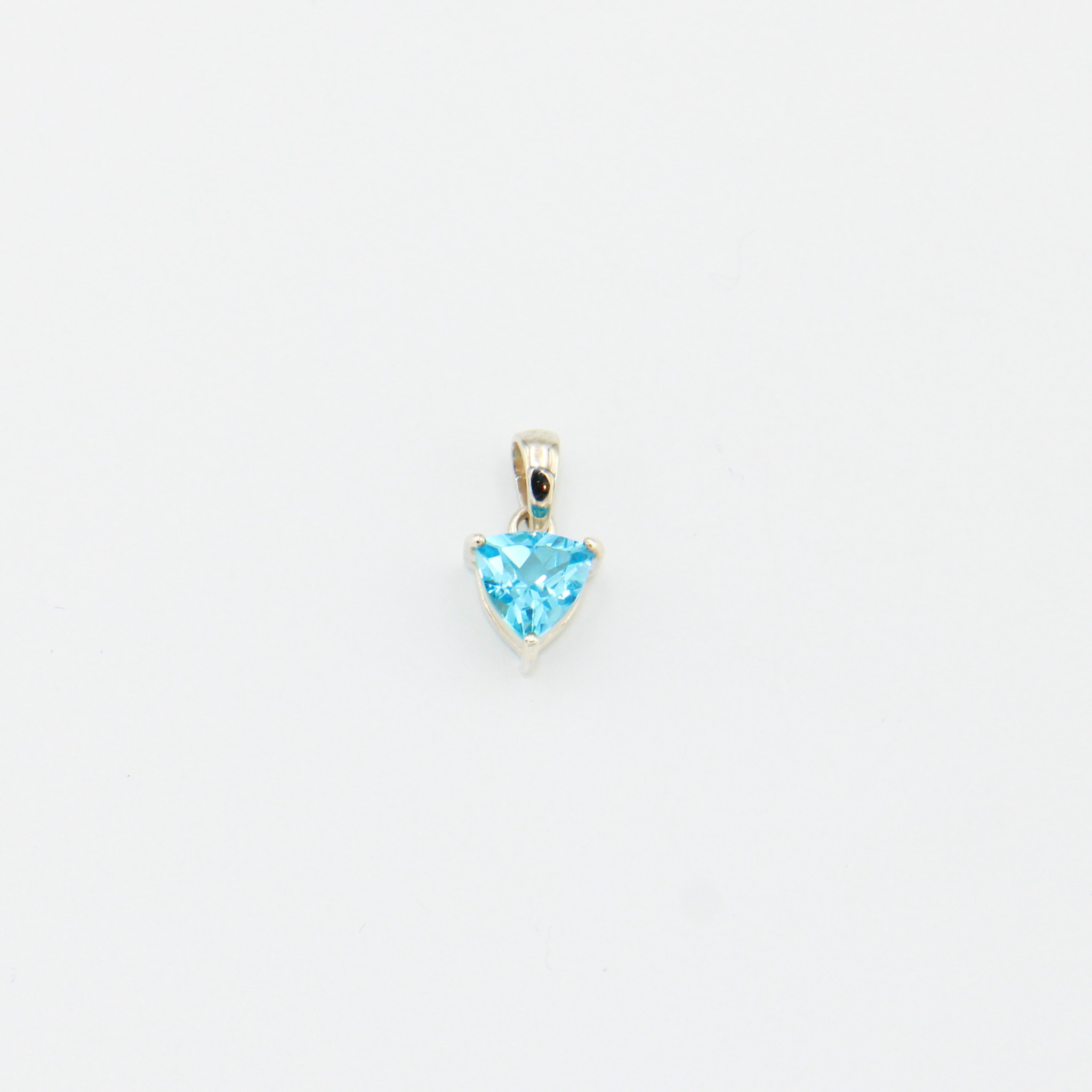 You cannot beat Blue Topaz for sparkle and cheerful color in any season. This little trilliant cut stone is set in sterling silver