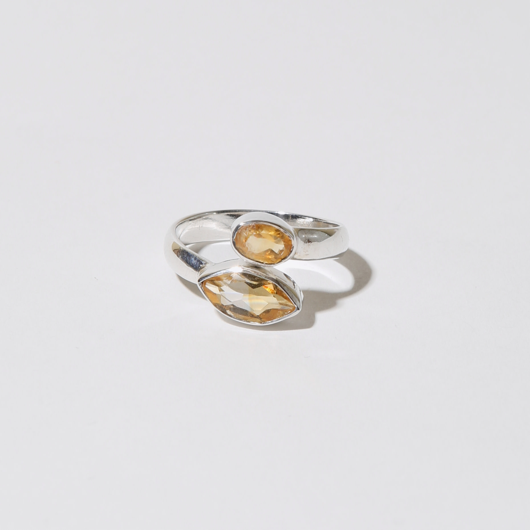 Pretty two-stone ring featuring oval and marquis cut stones hand made in a sterling silver wrap style ring. Size 8, but slightly adjustable.