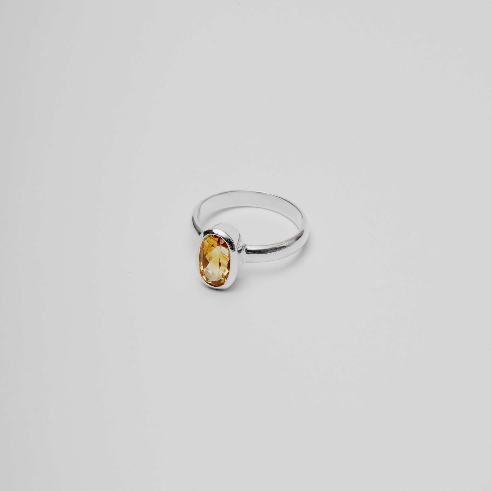 Oval Citrine stone set in sterling silver.Size 8.5
