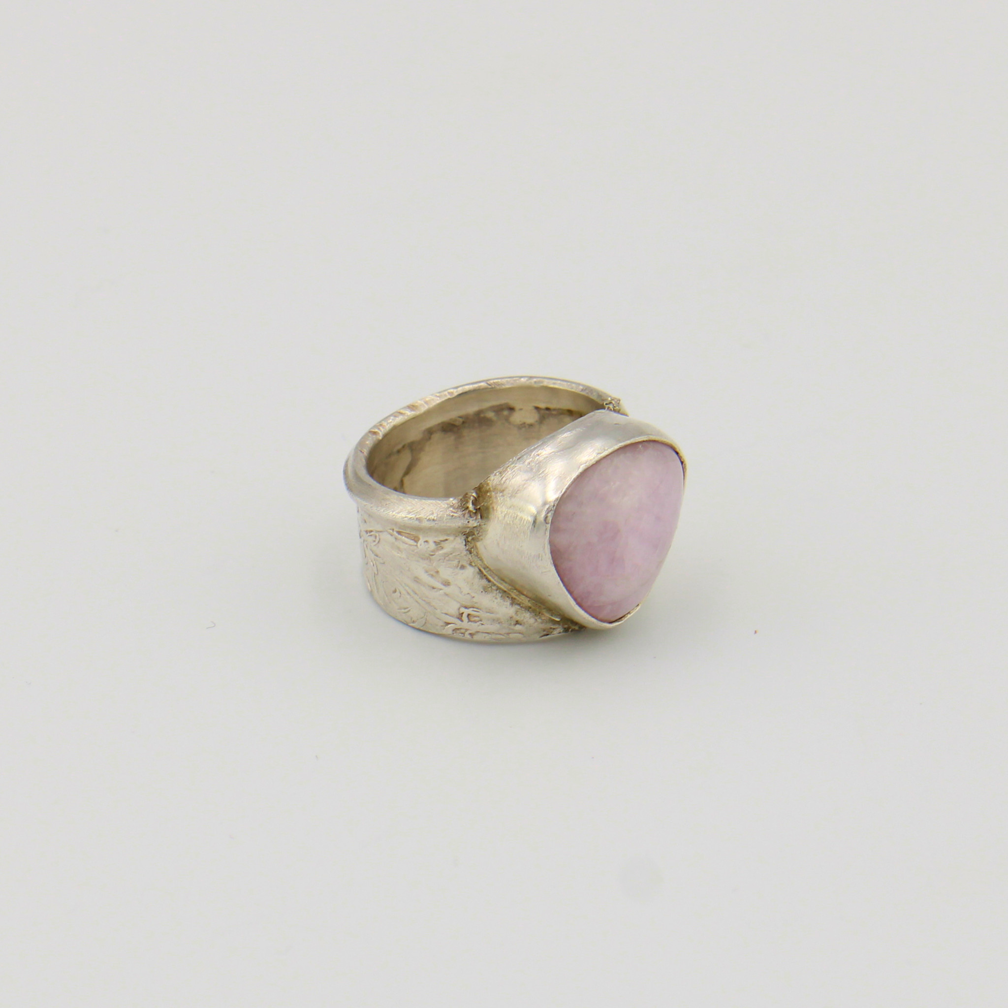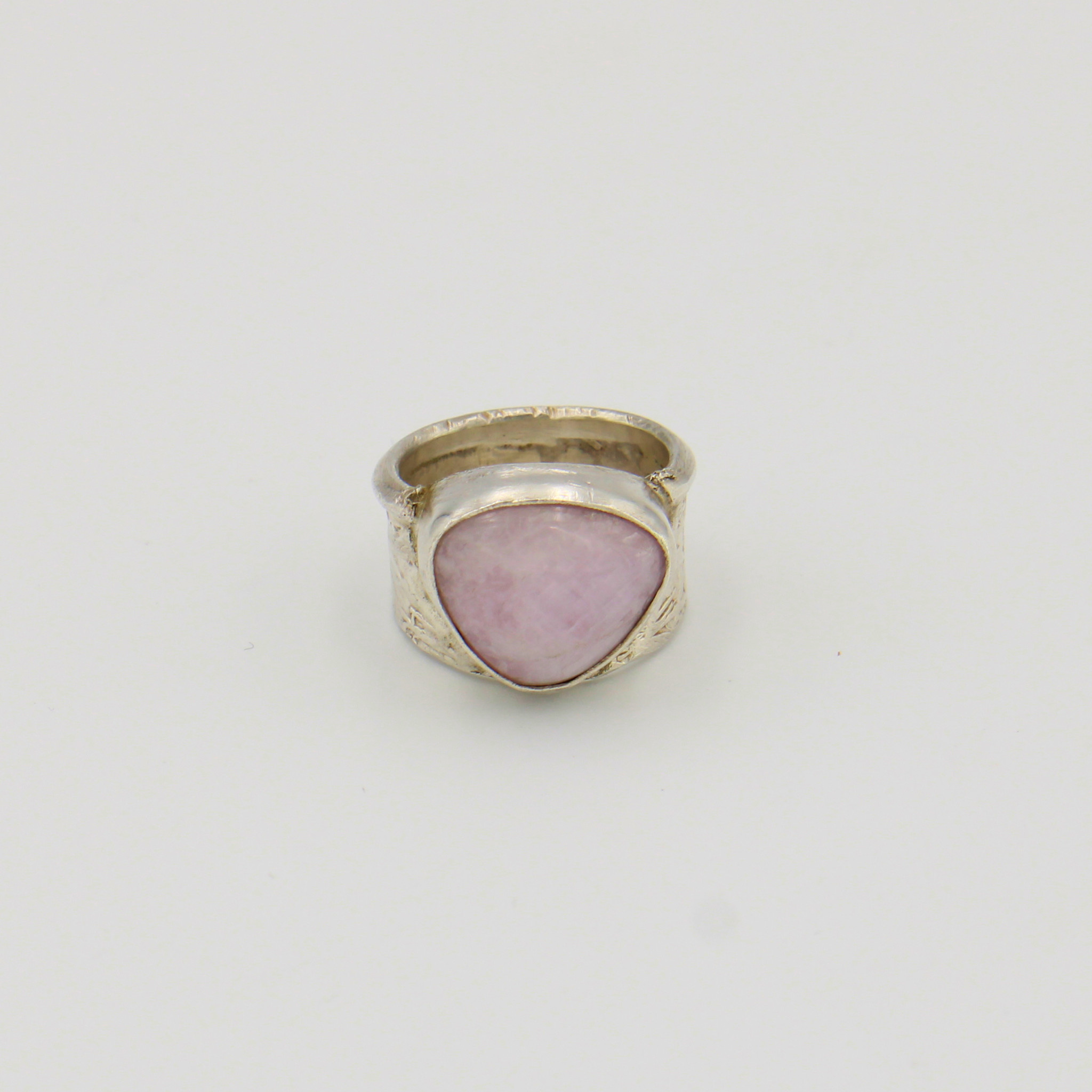Pale pink Kunzite is so pretty set in rustic sterling silver. This handmade ring is one-of-a-kind. Made in U.S. Size 6.