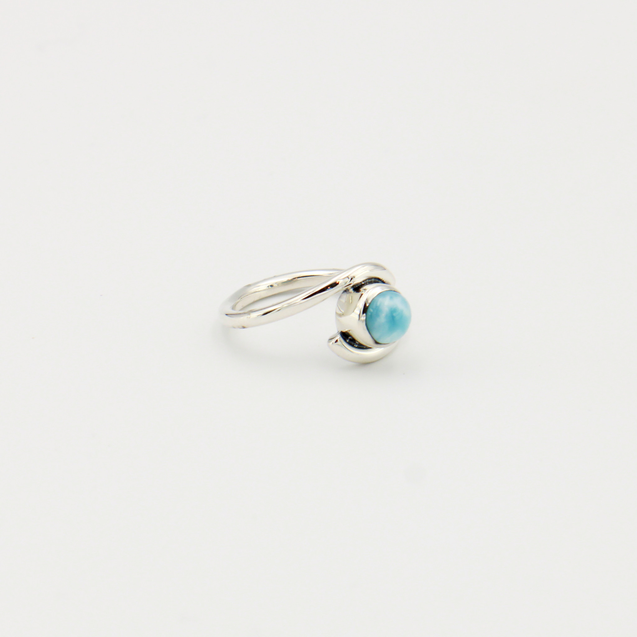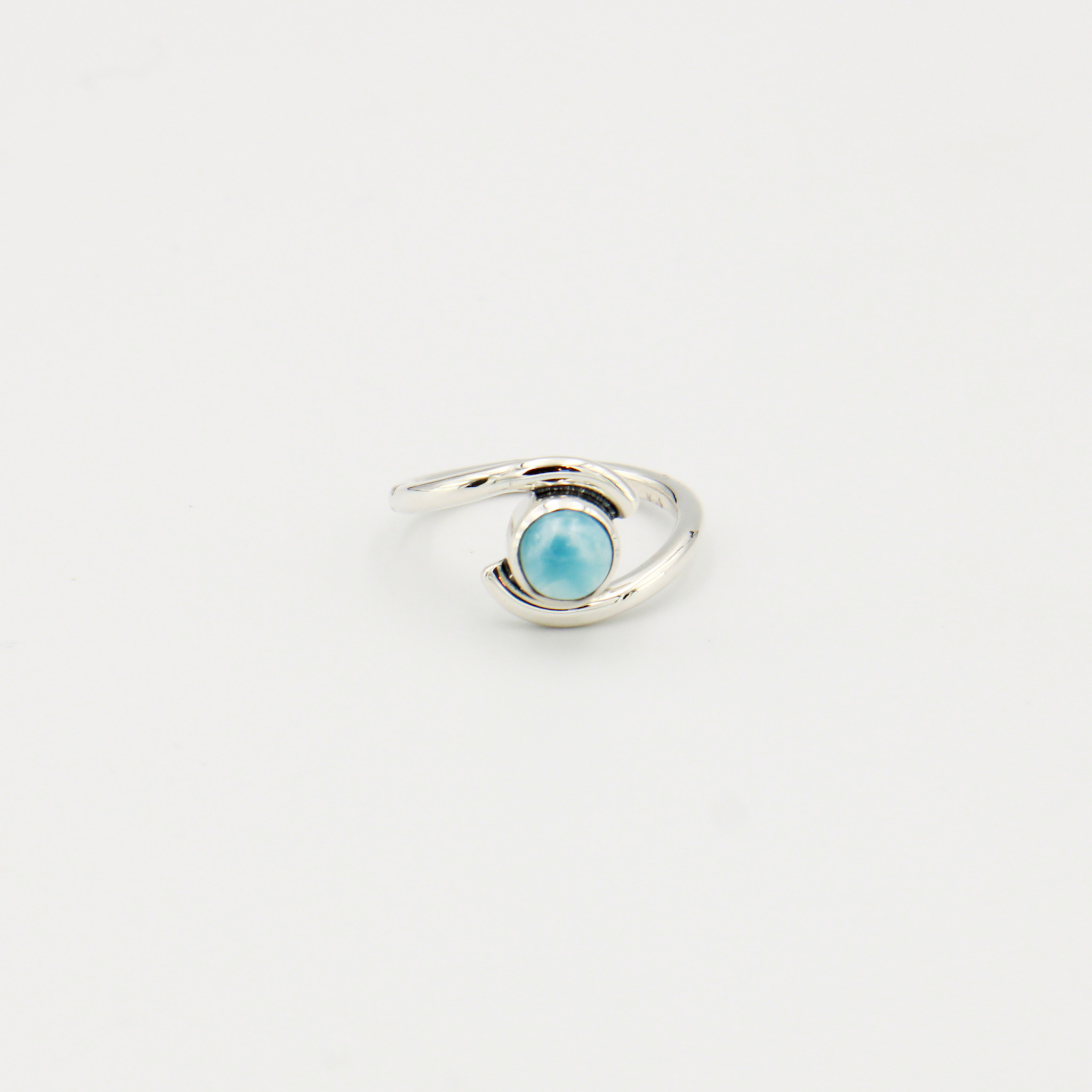 Elegant and pretty. This hand made Larimar ring features a small round stone set in sterling silver. Size 7