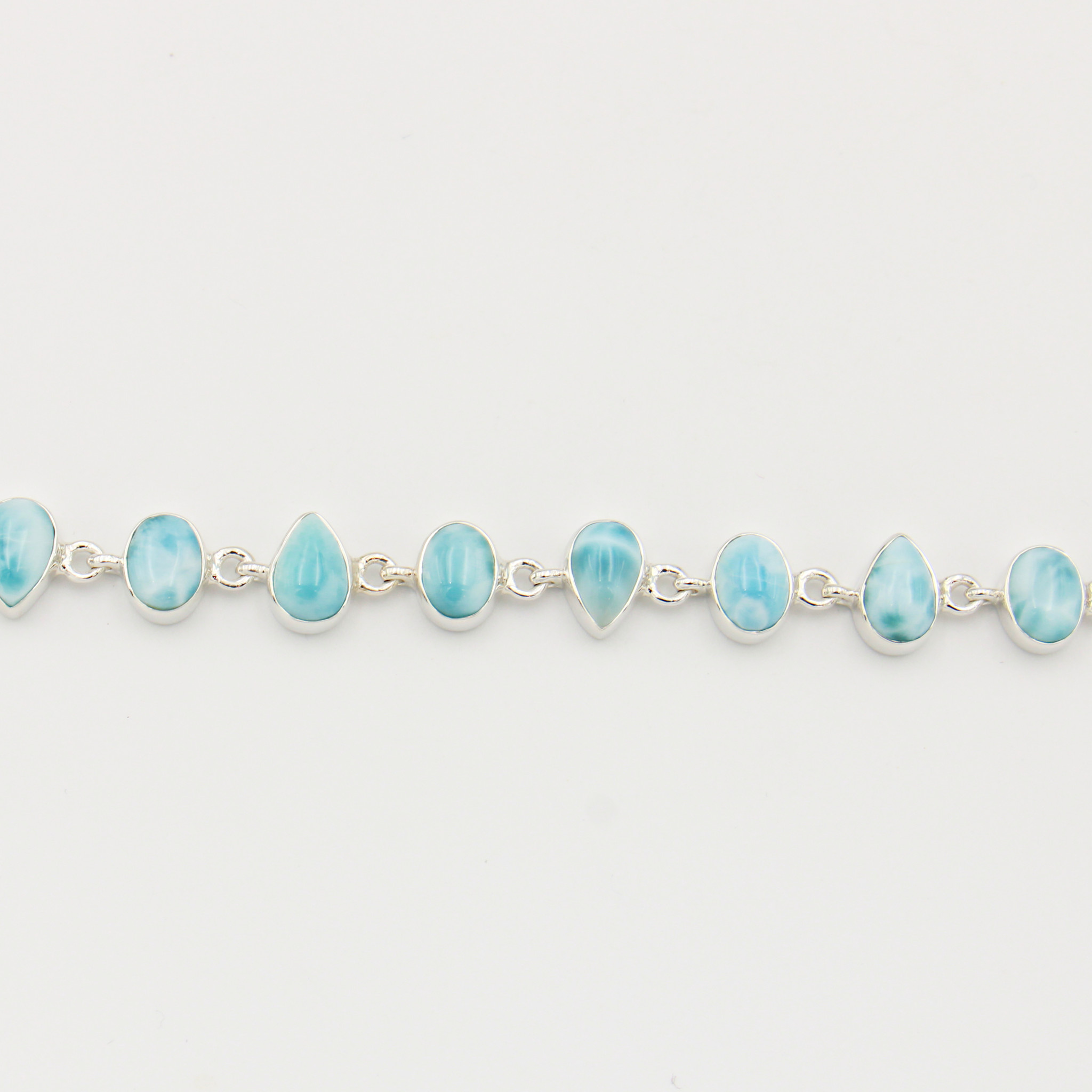 Larimar 13 stone bracelet. Hand made in sterling silver. Adjustable lobster style closure.