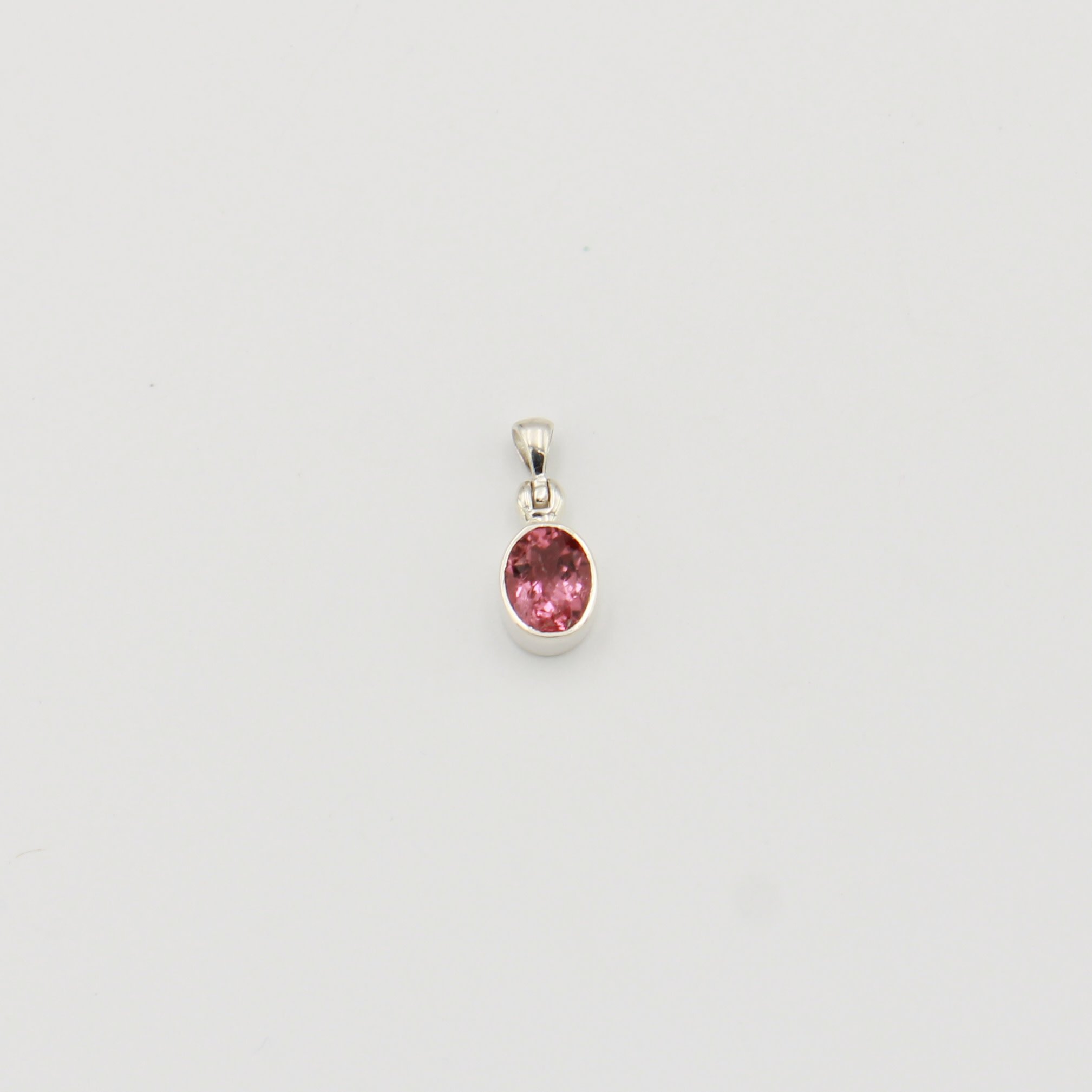 Pink Tourmaline is a customer favorite! This pretty pendant is hand made in sterling silver. Stone is approximately 9mm long