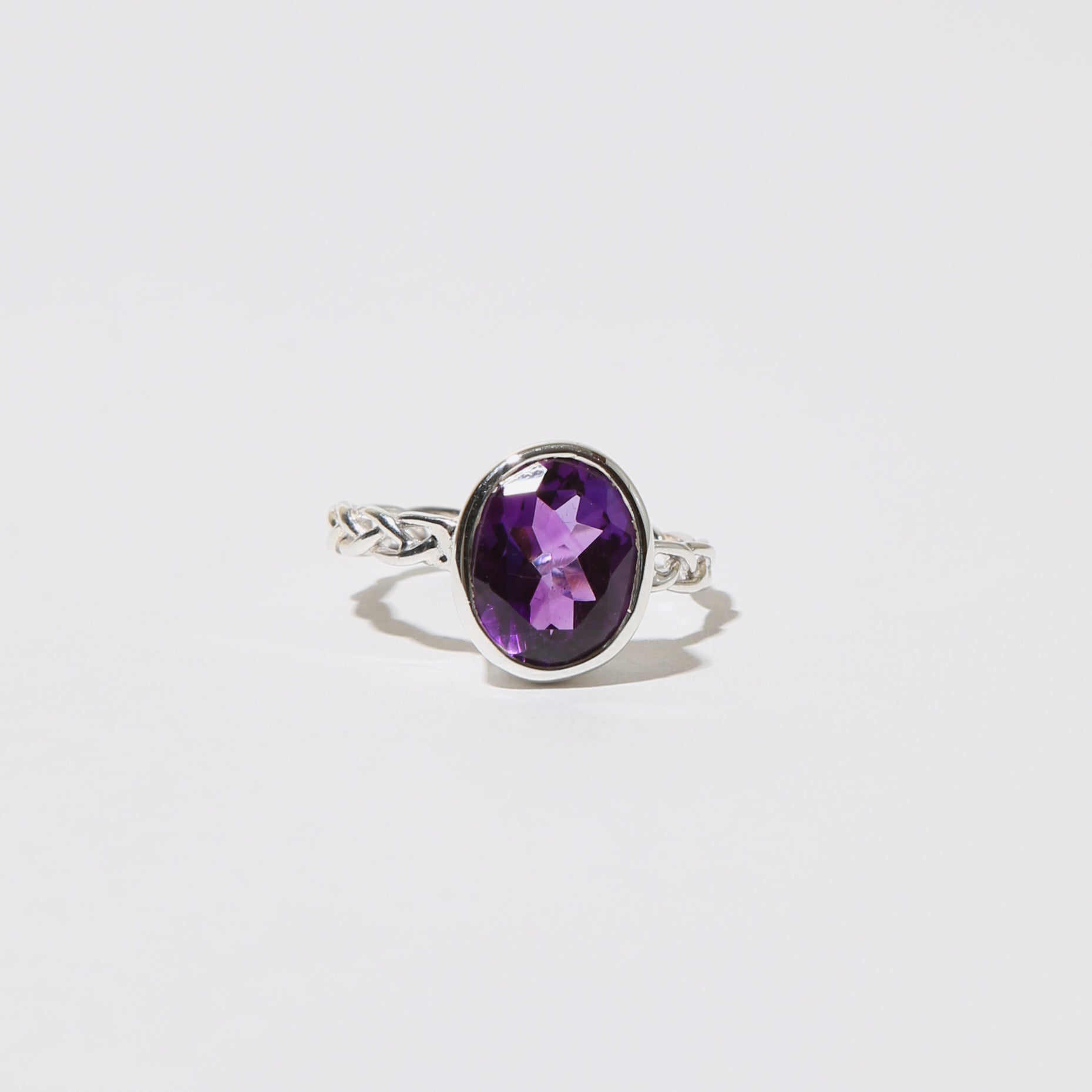 Amethyst Oval Sterling Braid Ring Sz 8