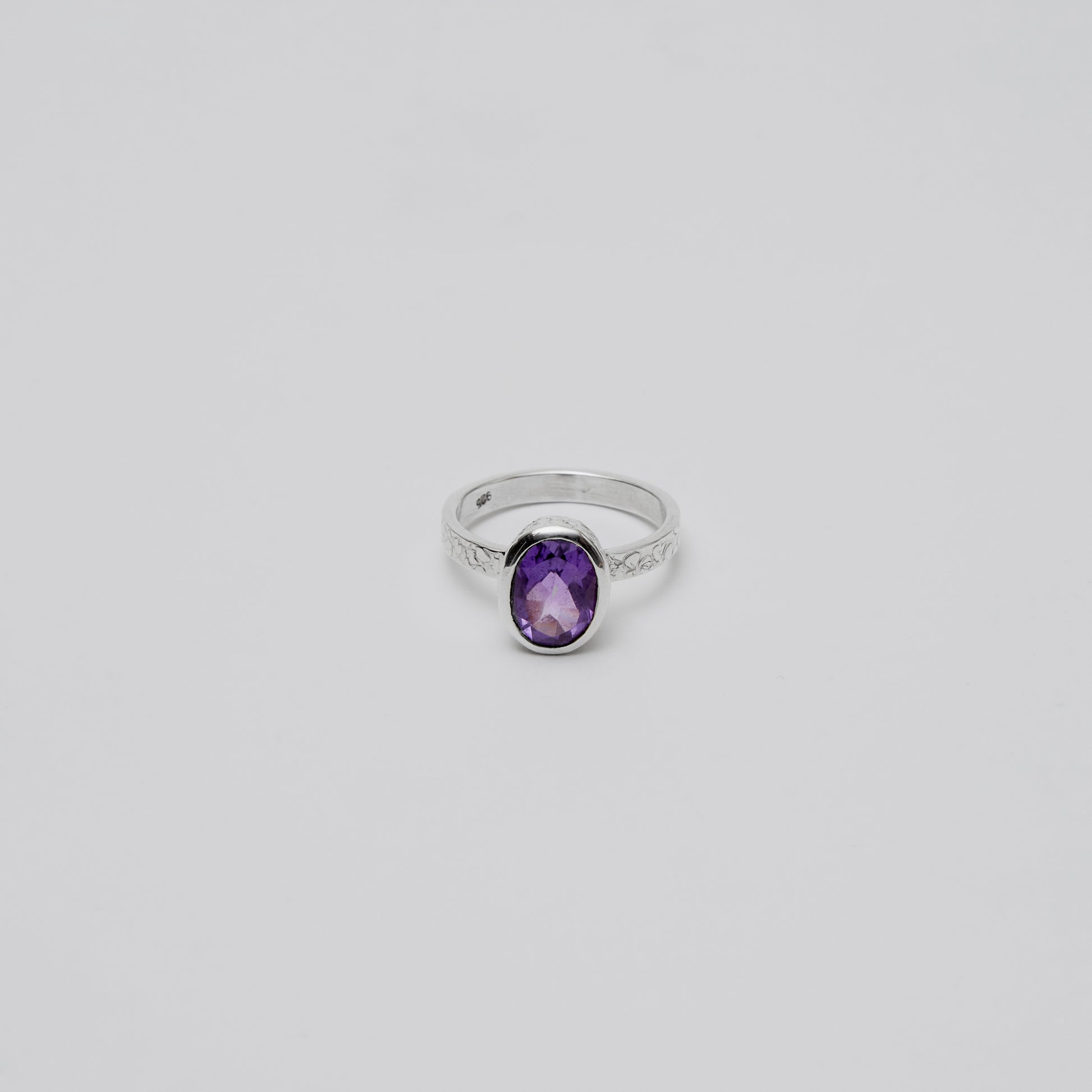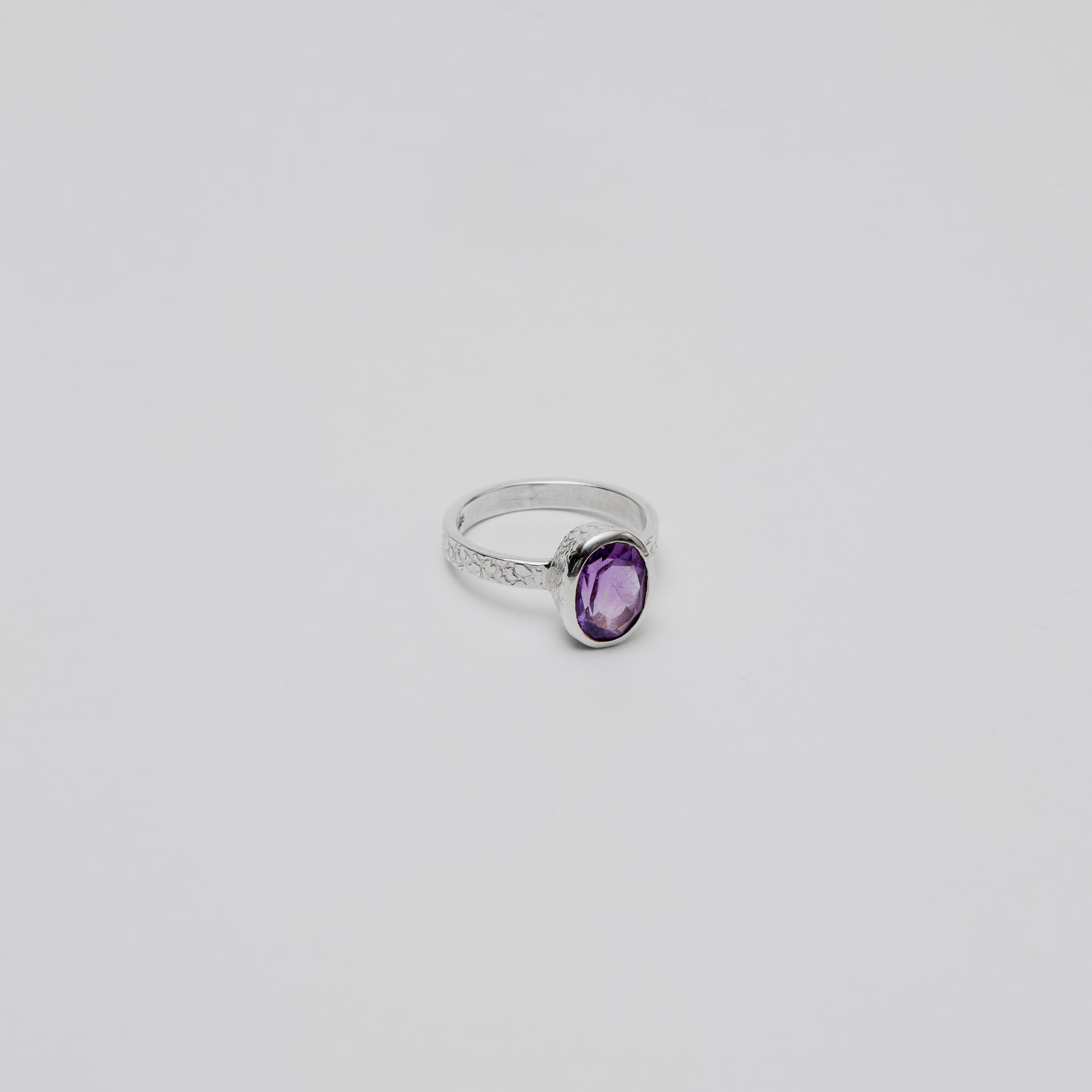 Amethyst Oval Sterling Textured Ring Sz 7.5