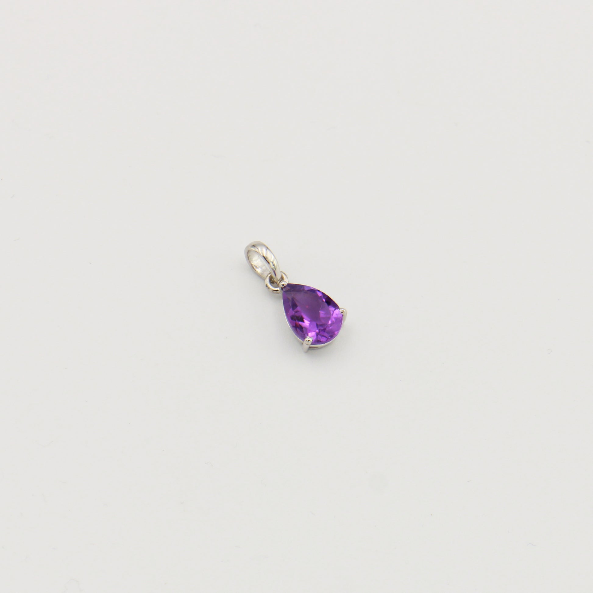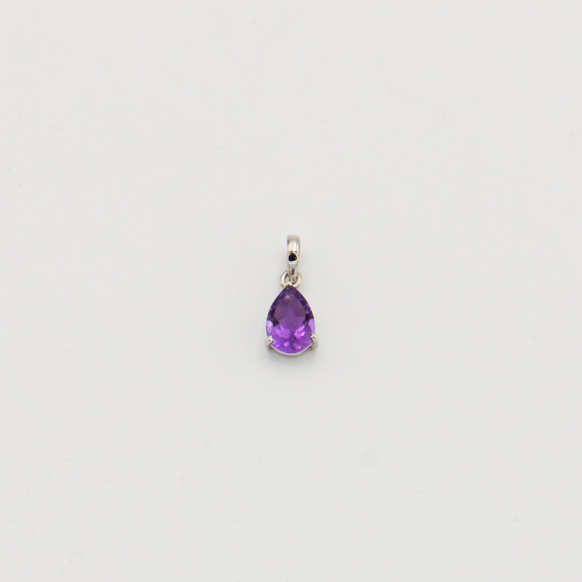 Pear-cut amethyst set in sterling silver prongs. A refined pendant featuring rich purple gemstone and timeless metalwork, ideal for everyday elegance or special occasions.