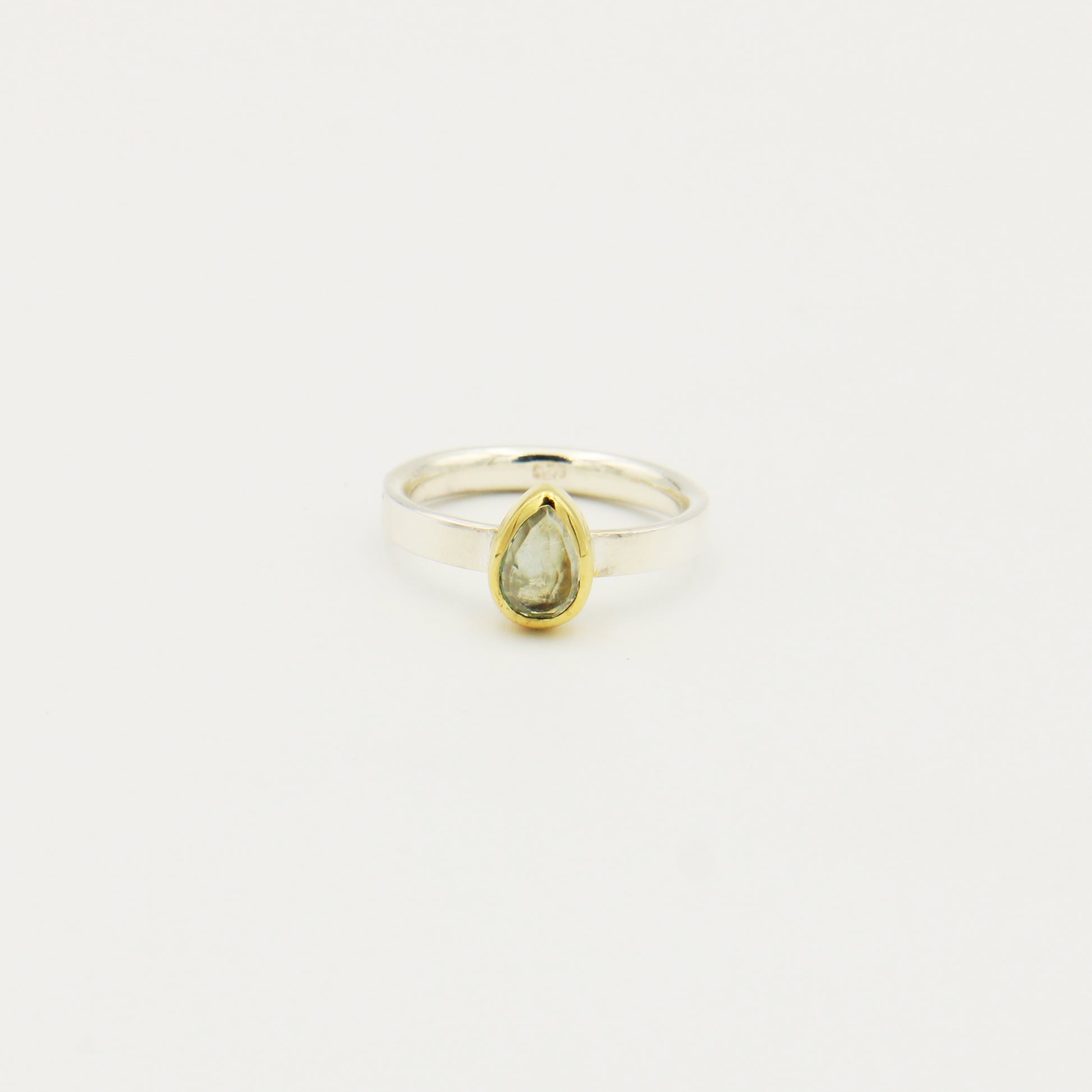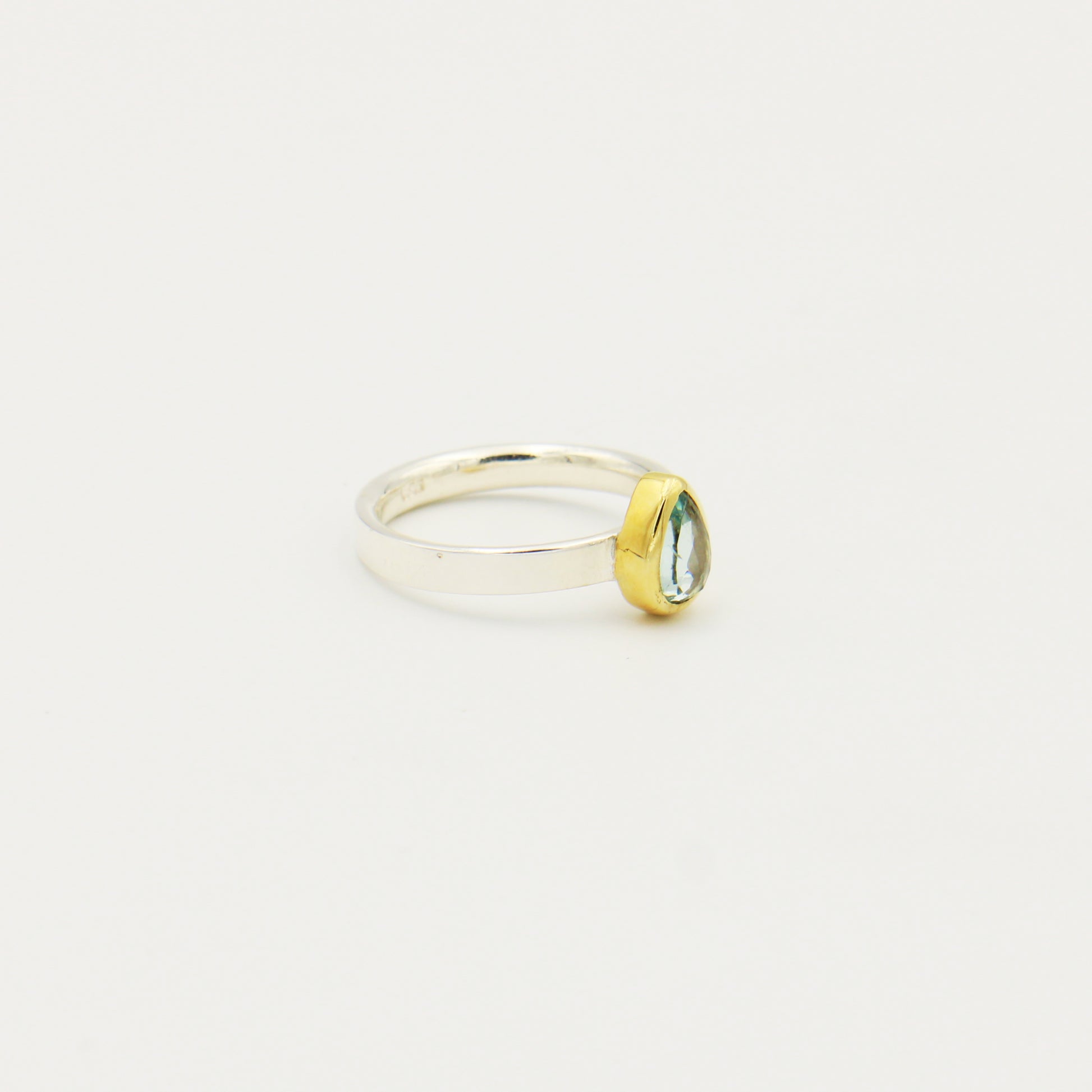 Aquamarine Teardrop Sterling GP Ring Size 9