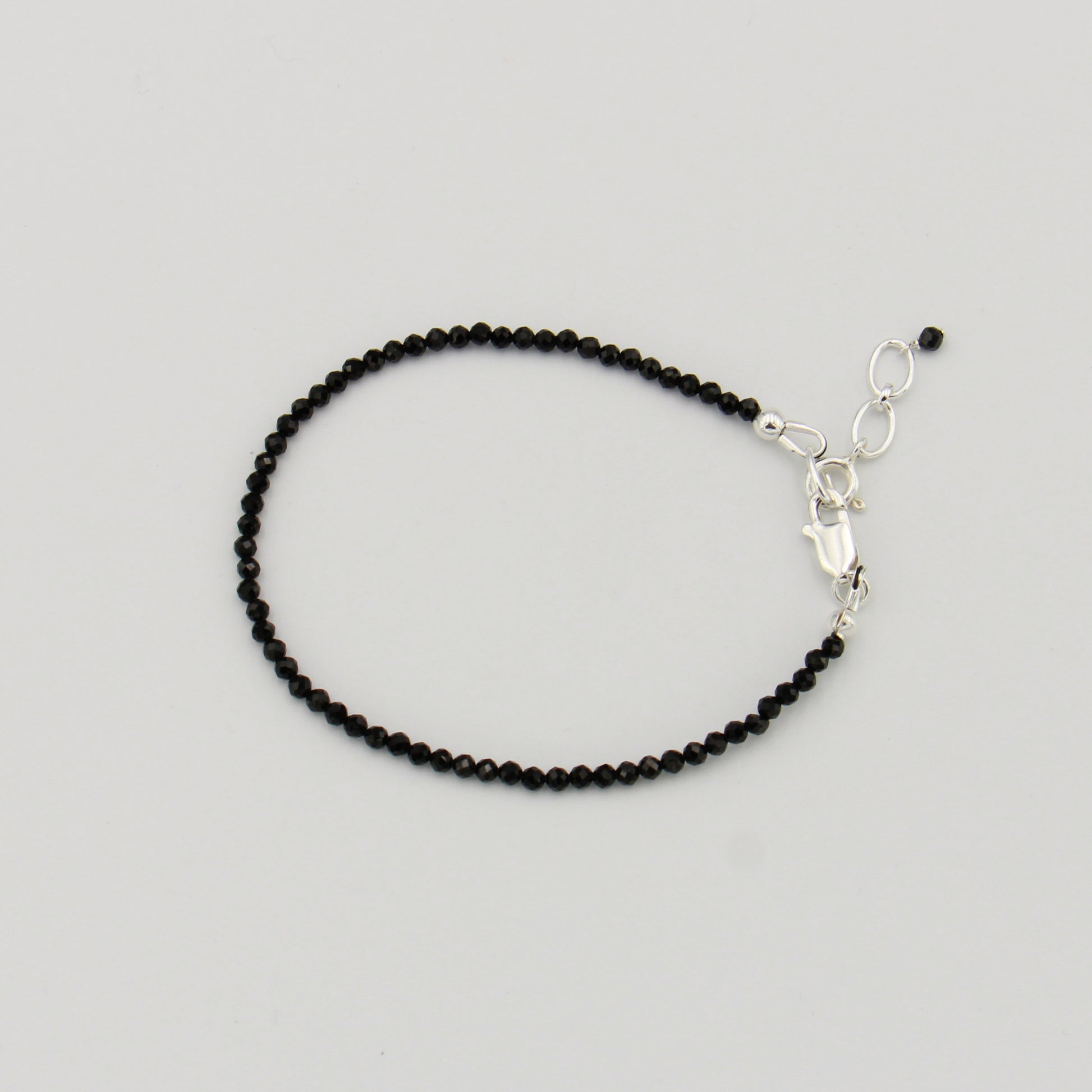 Black tourmaline beads strung on sterling silver create an understated bracelet perfect for everyday wear. The delicate beaded design offers a minimalist aesthetic while the natural stone brings grounding energy to your wrist.