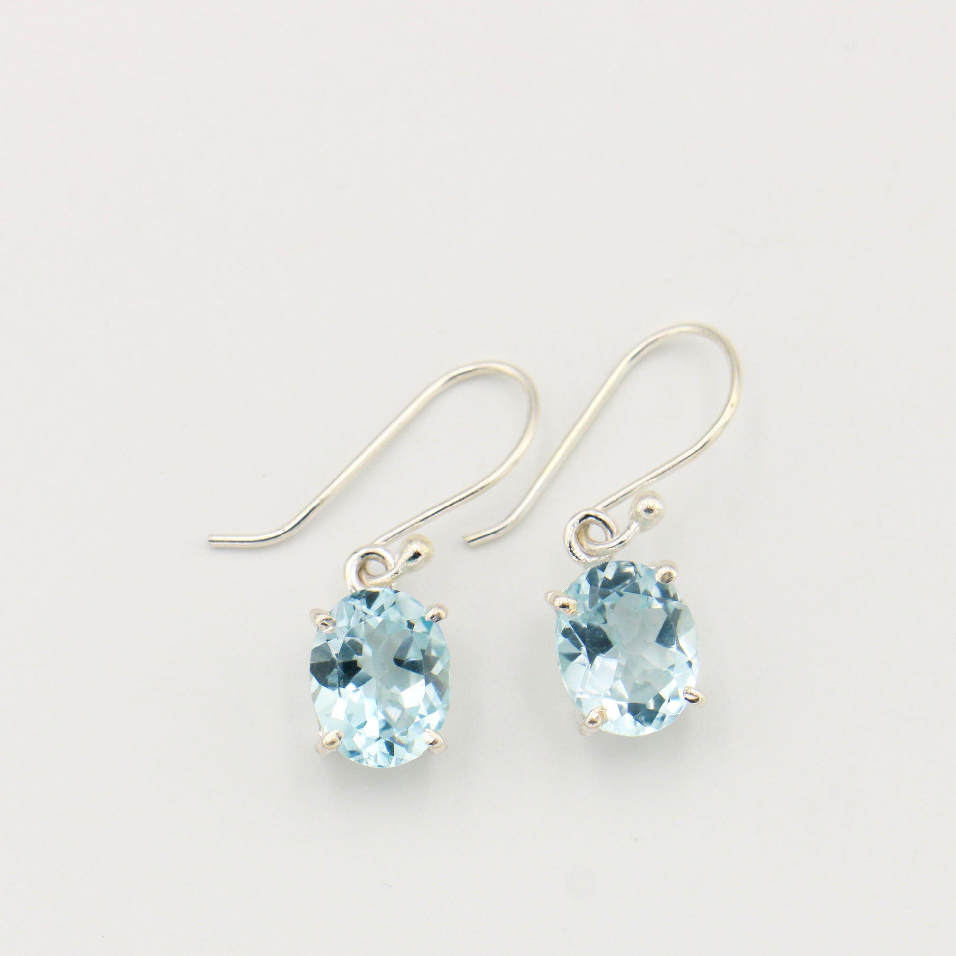 Blue topaz ovals catch the light beautifully in these sterling silver earrings. The classic prong setting showcases each stone's brilliant color while keeping the design timeless and versatile.