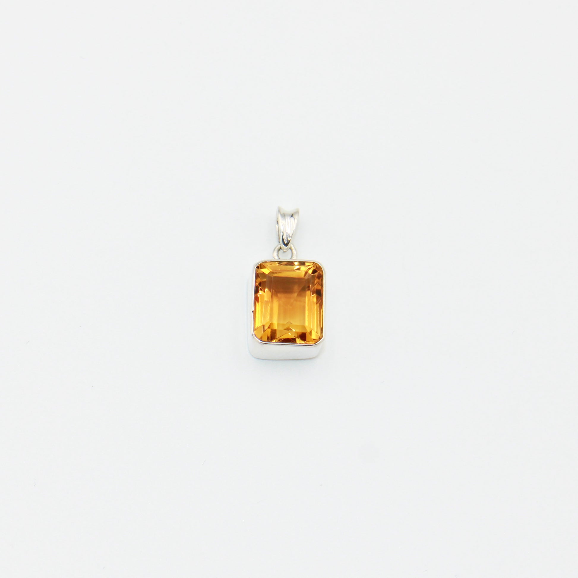 Warm golden citrine in a rectangular cut, set in sterling silver with a simple bale for easy stringing. This straightforward pendant brings natural color and elegance to any chain or cord.