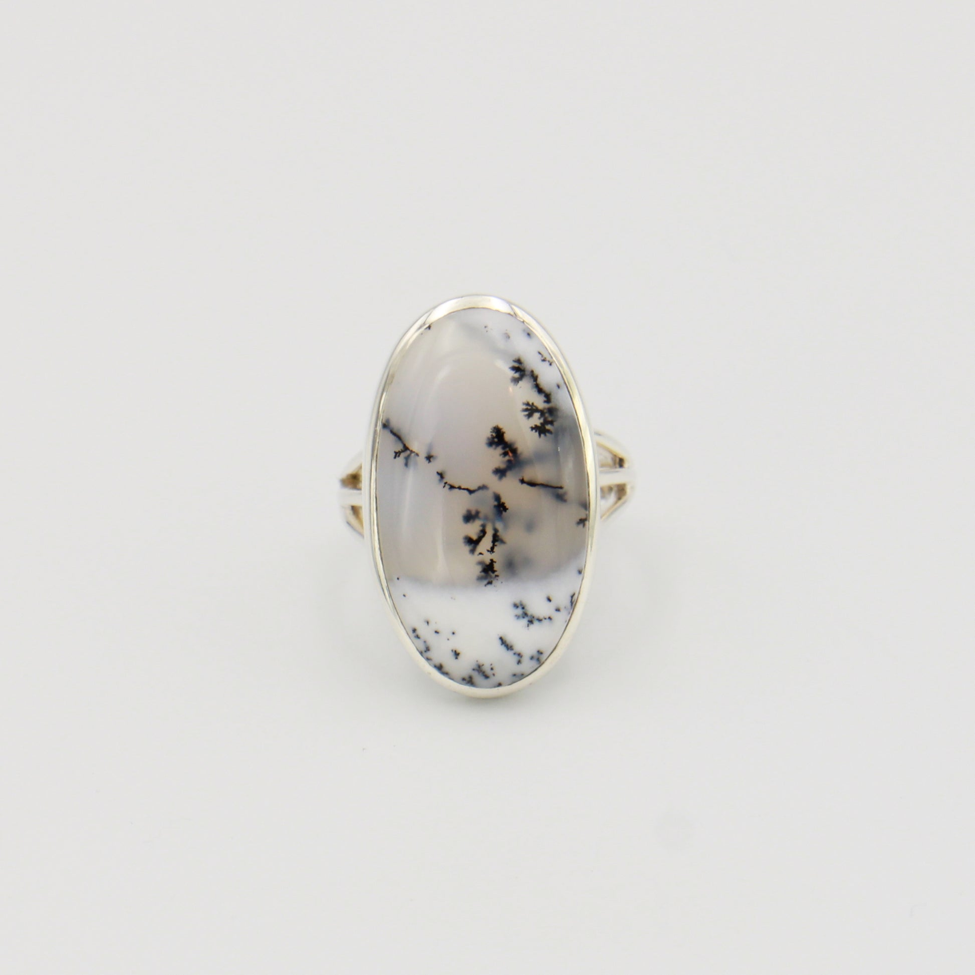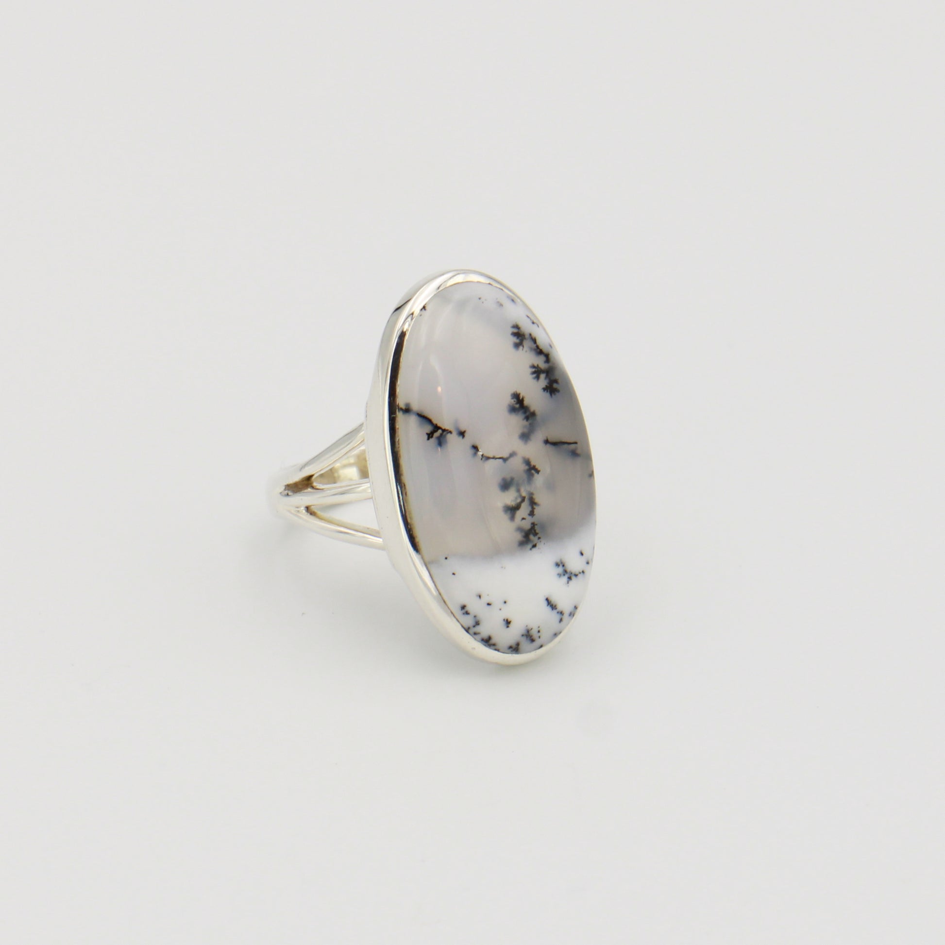 Dendritic Agate Oval Sterling Ring Sz 6.5