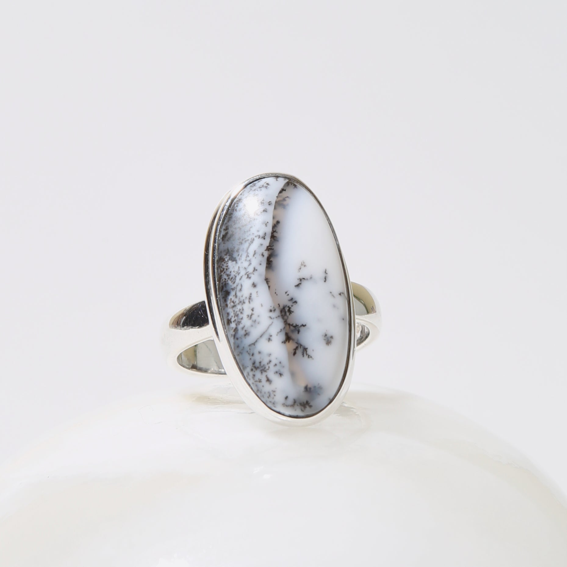 Dendritic Agate Oval Sterling Ring Sz 7.75