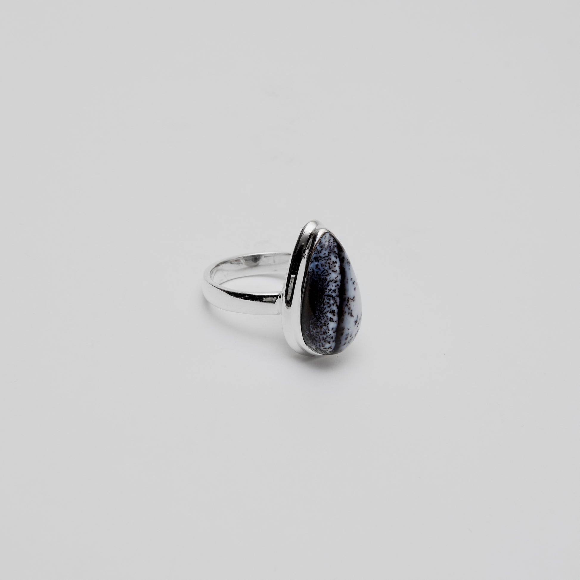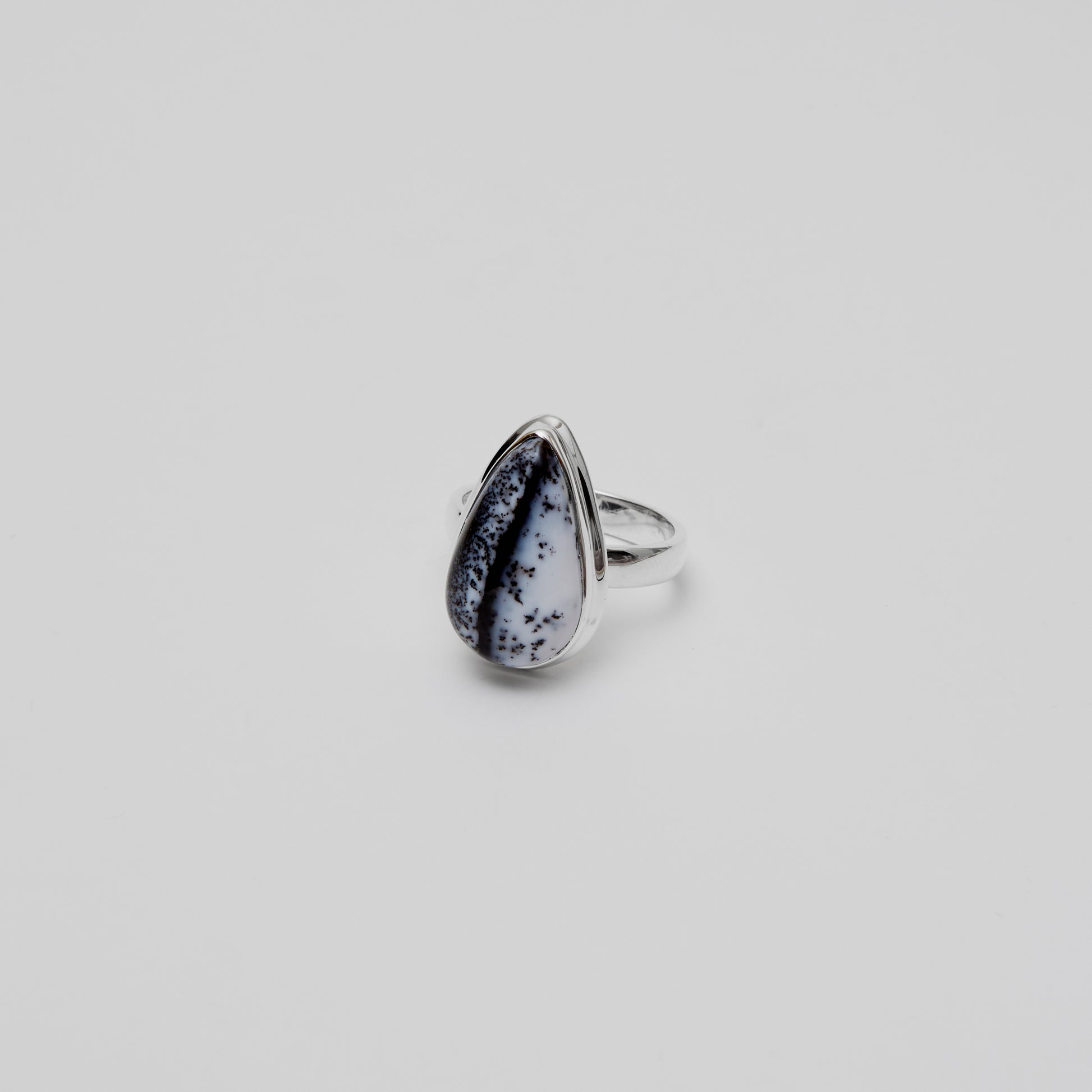 Dendritic Agate Pear Sterling Ring Sz 7.5
