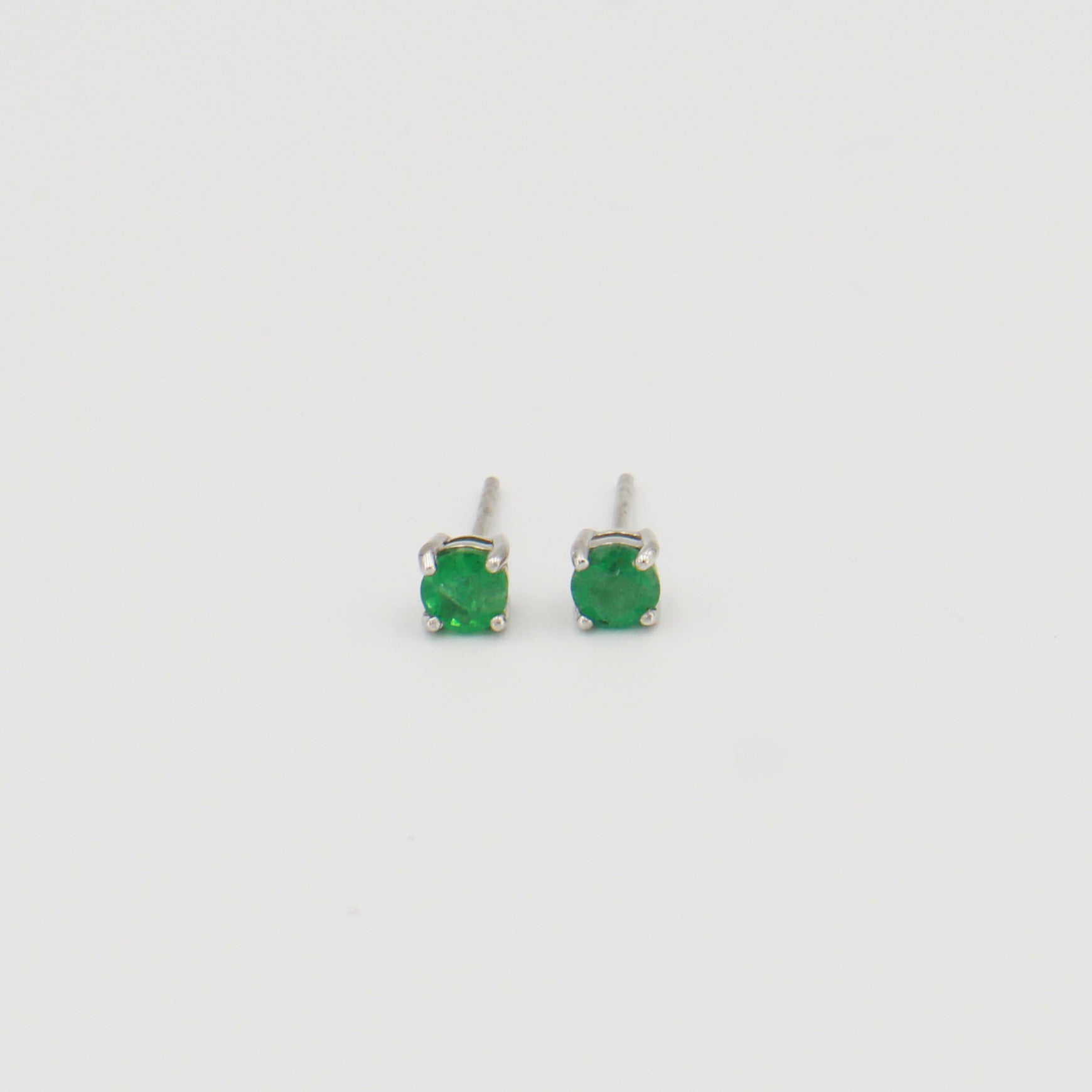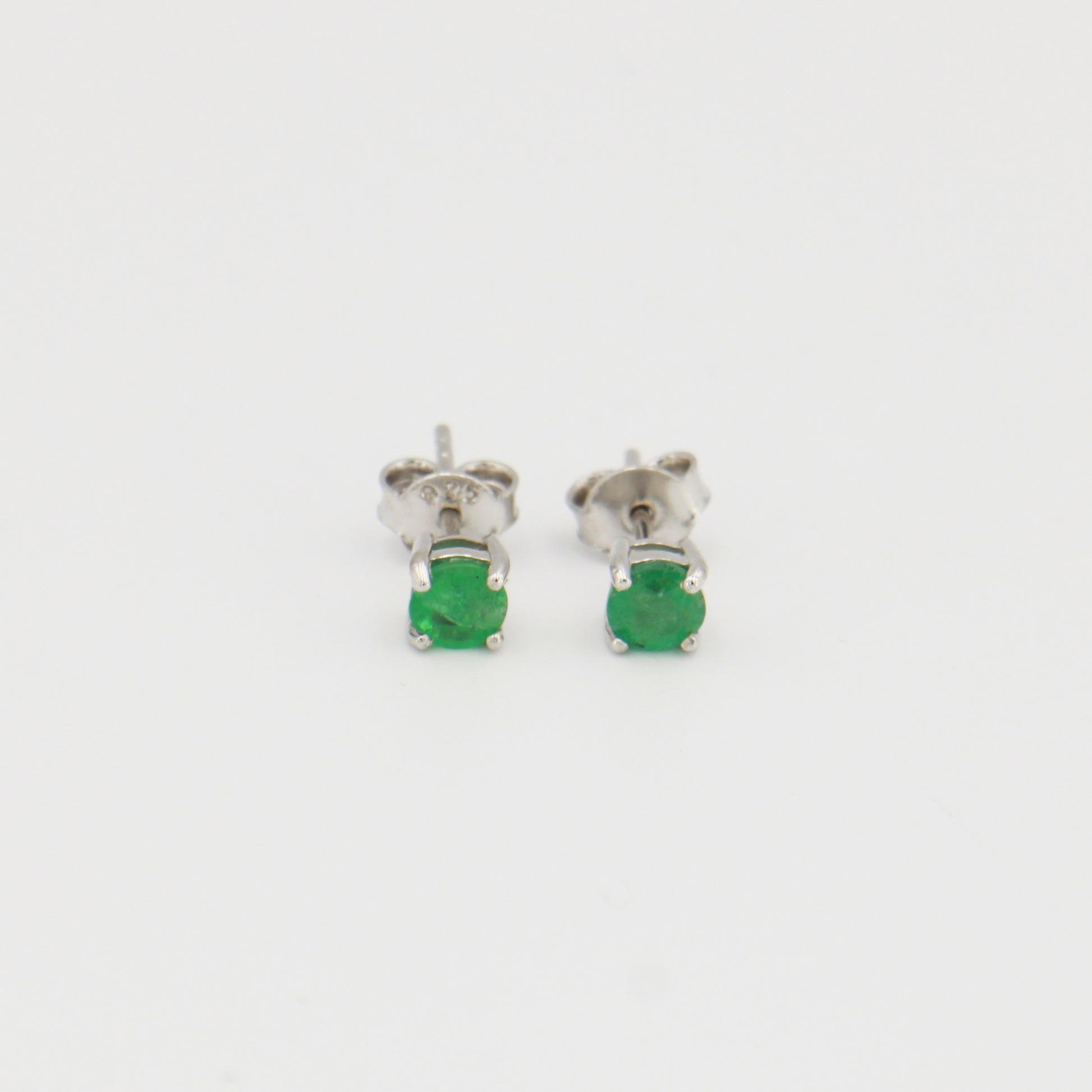 Emerald Round Prong Sterling Studs 4mm
