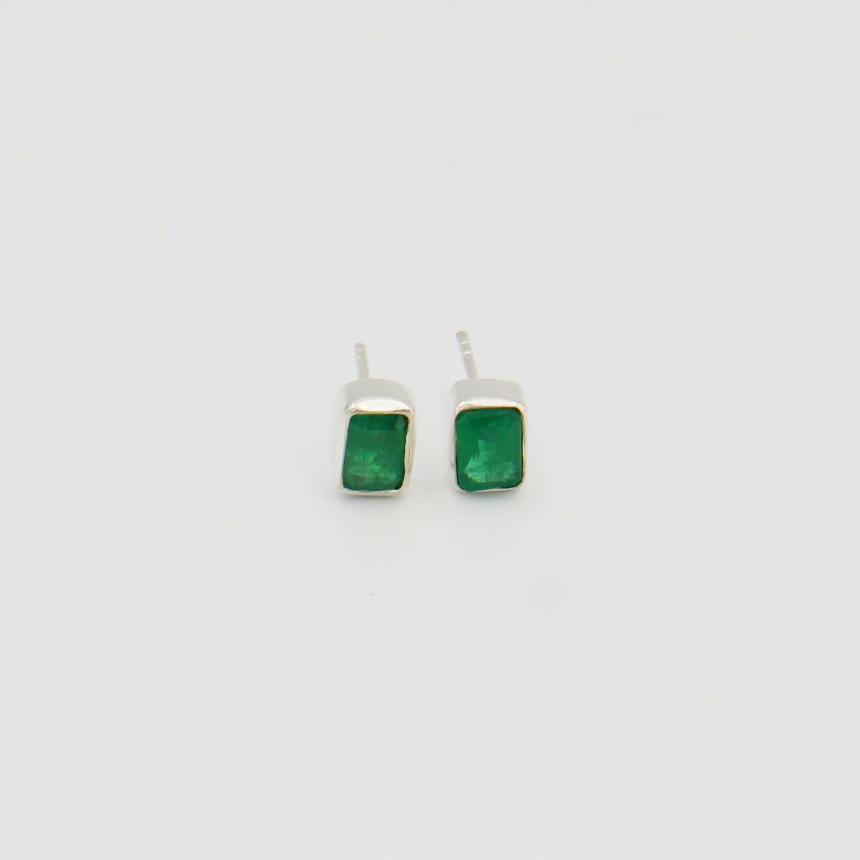 Emerald Sterling Emerald Cut Studs