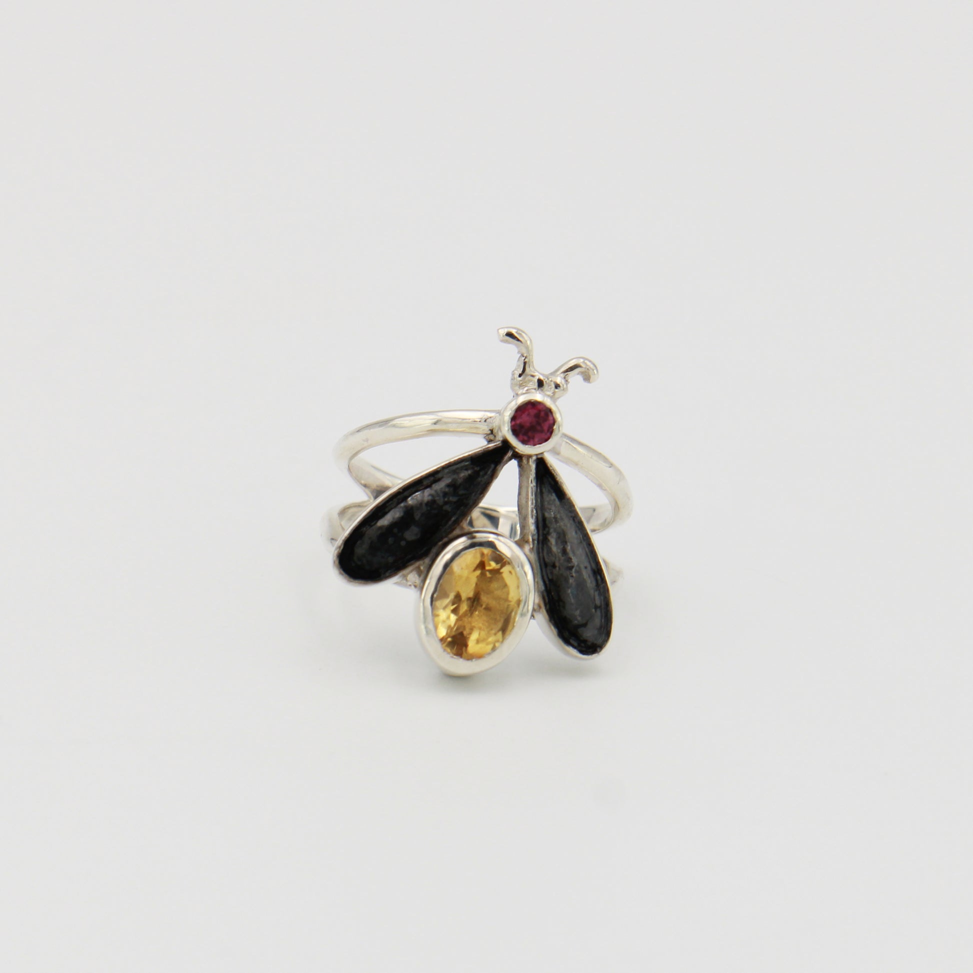Firefly Citrine & Tourmaline Sterling Ring Sz 7