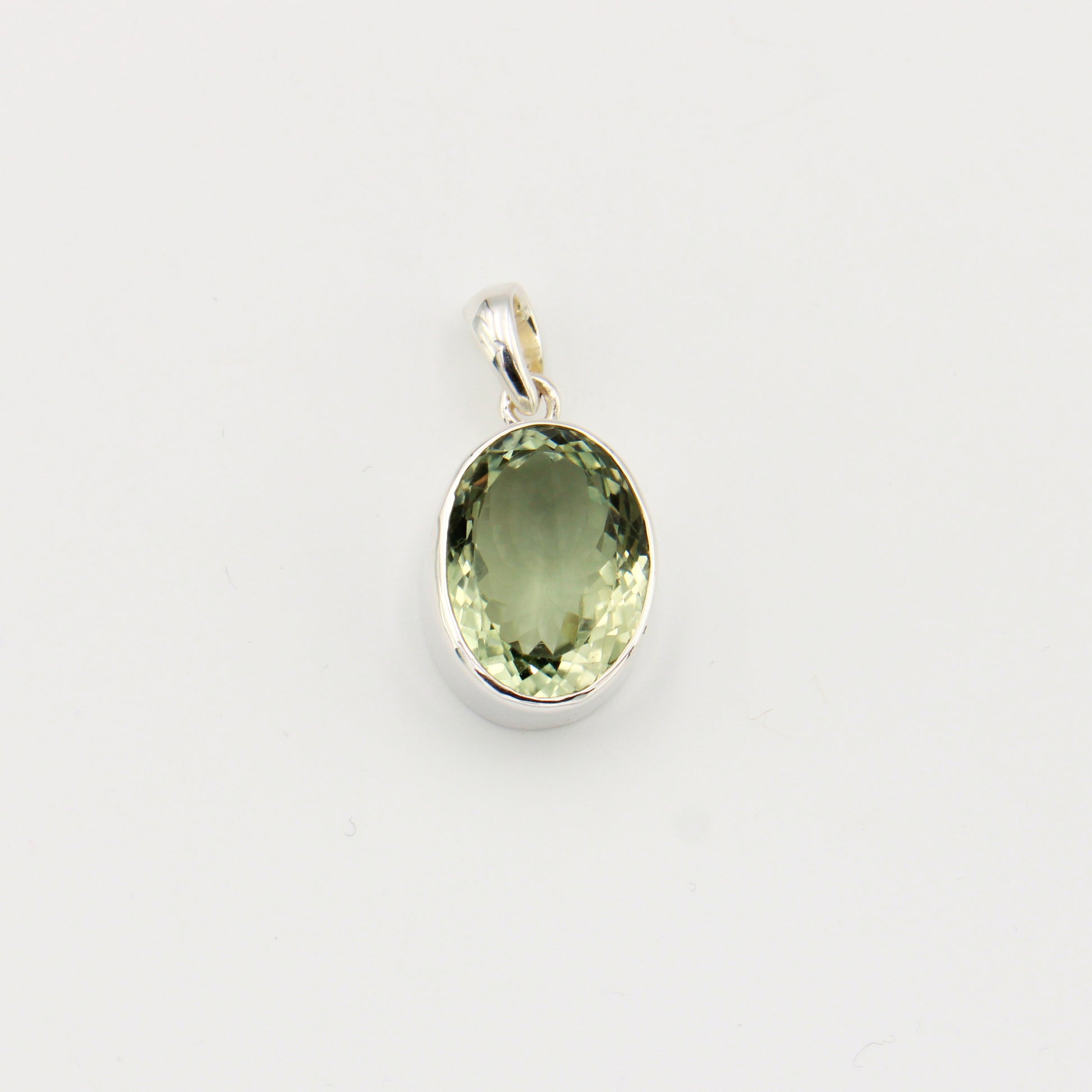 Green Amethyst Large Oval Sterling Pendant