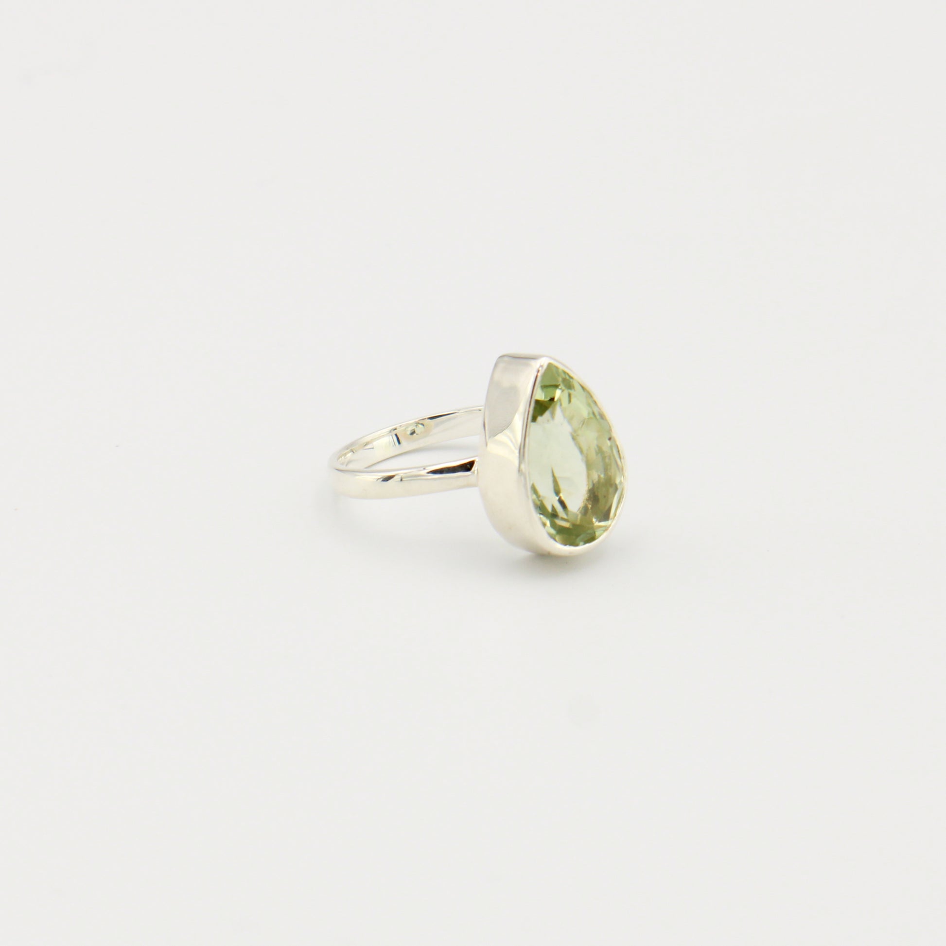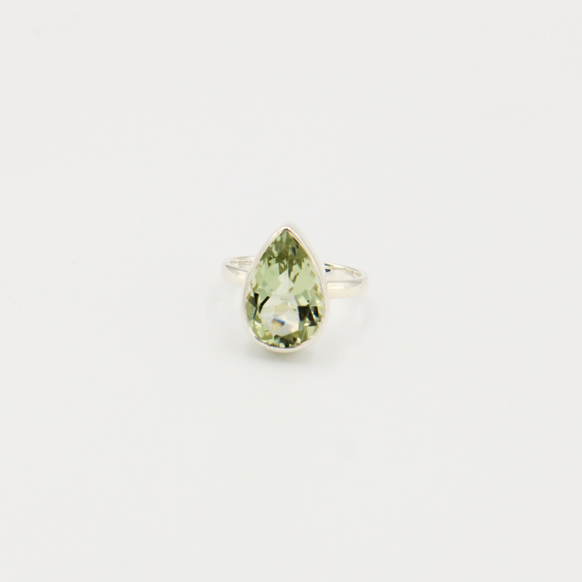 Green Amethyst Pear Sterling Ring Sz 6