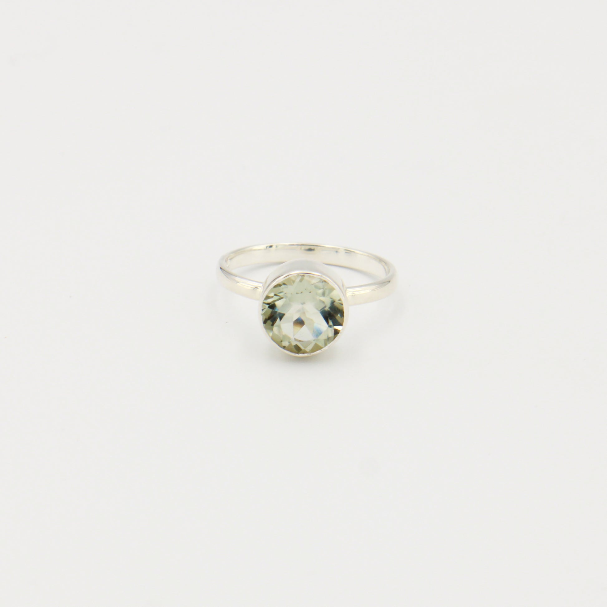 Green Amethyst Round Sterling Ring Sz 10