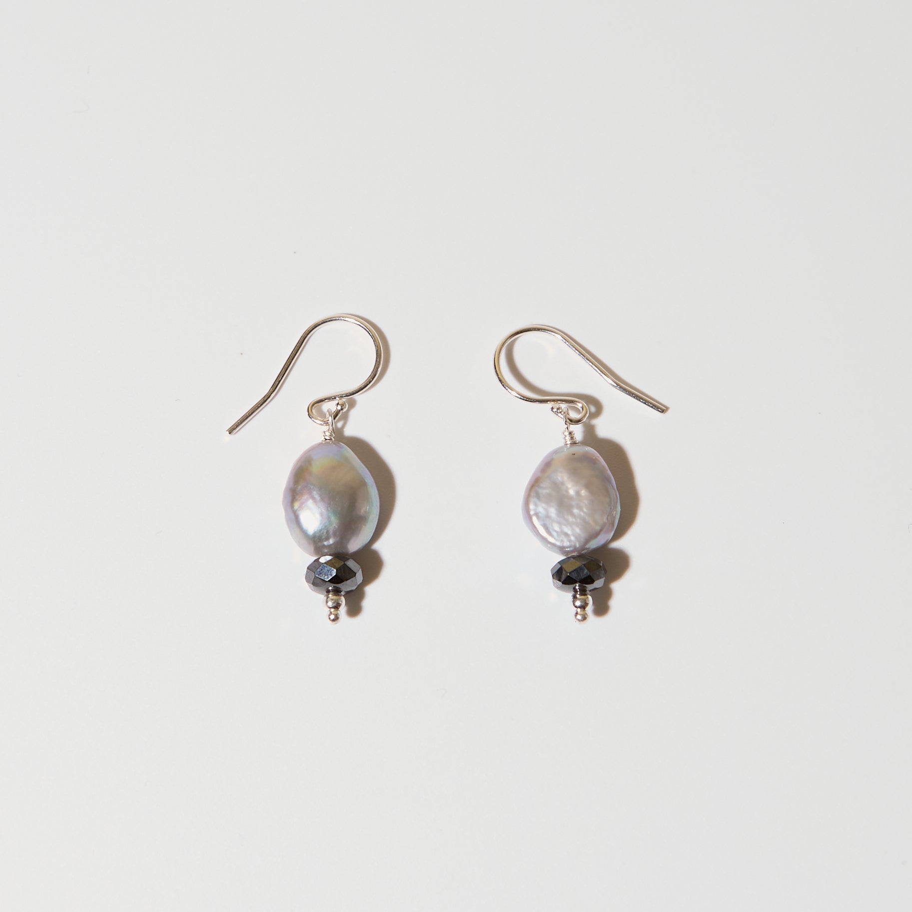 Grey Pearl & Hematite Sterling Earrings