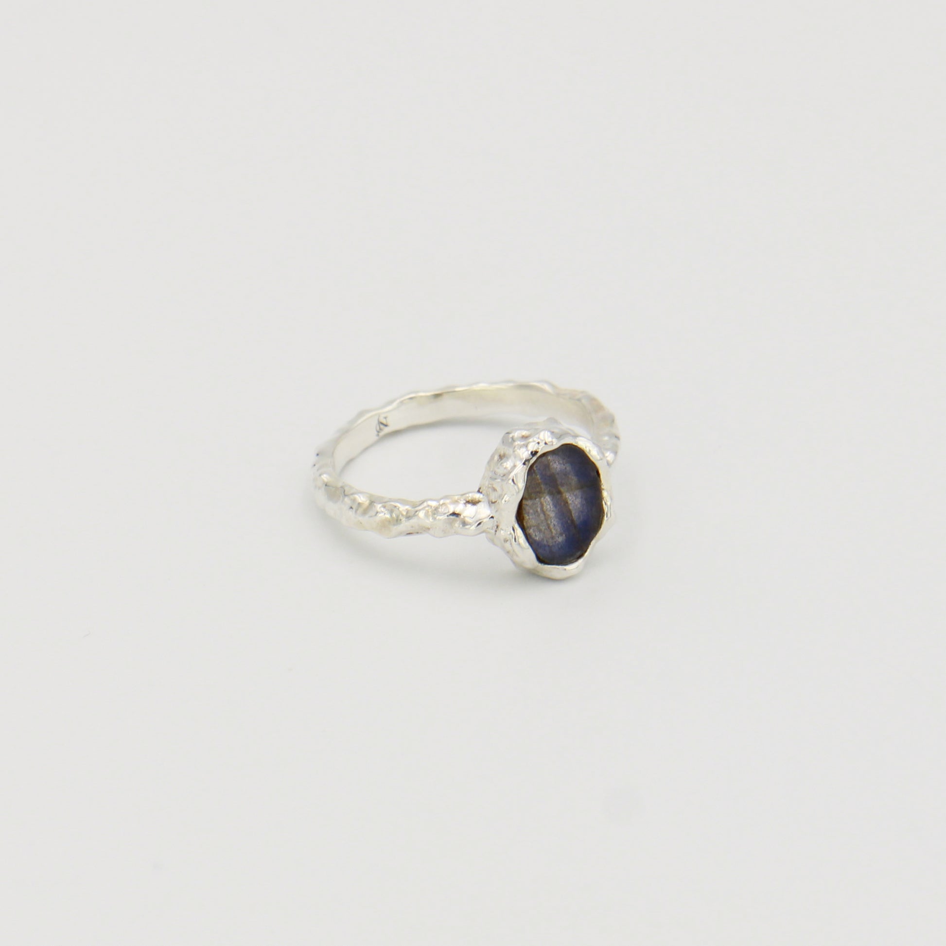 Labradorite Oval Rustic Sterling Ring Sz 7
