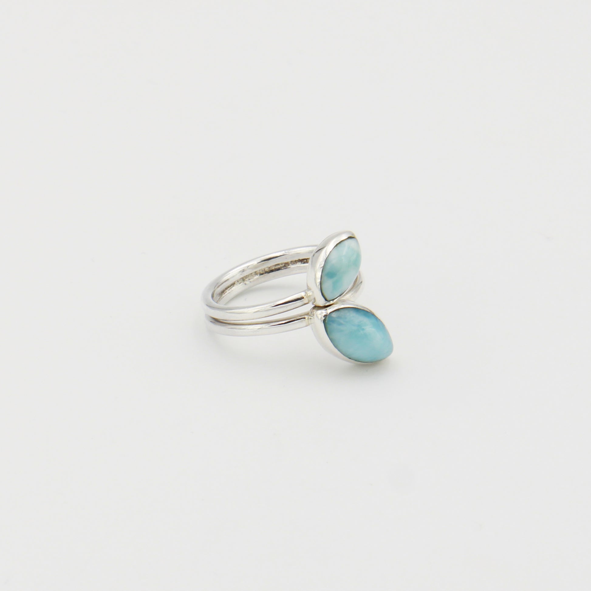 Larimar Marquis Leaves Sterling Ring Sz 8.5