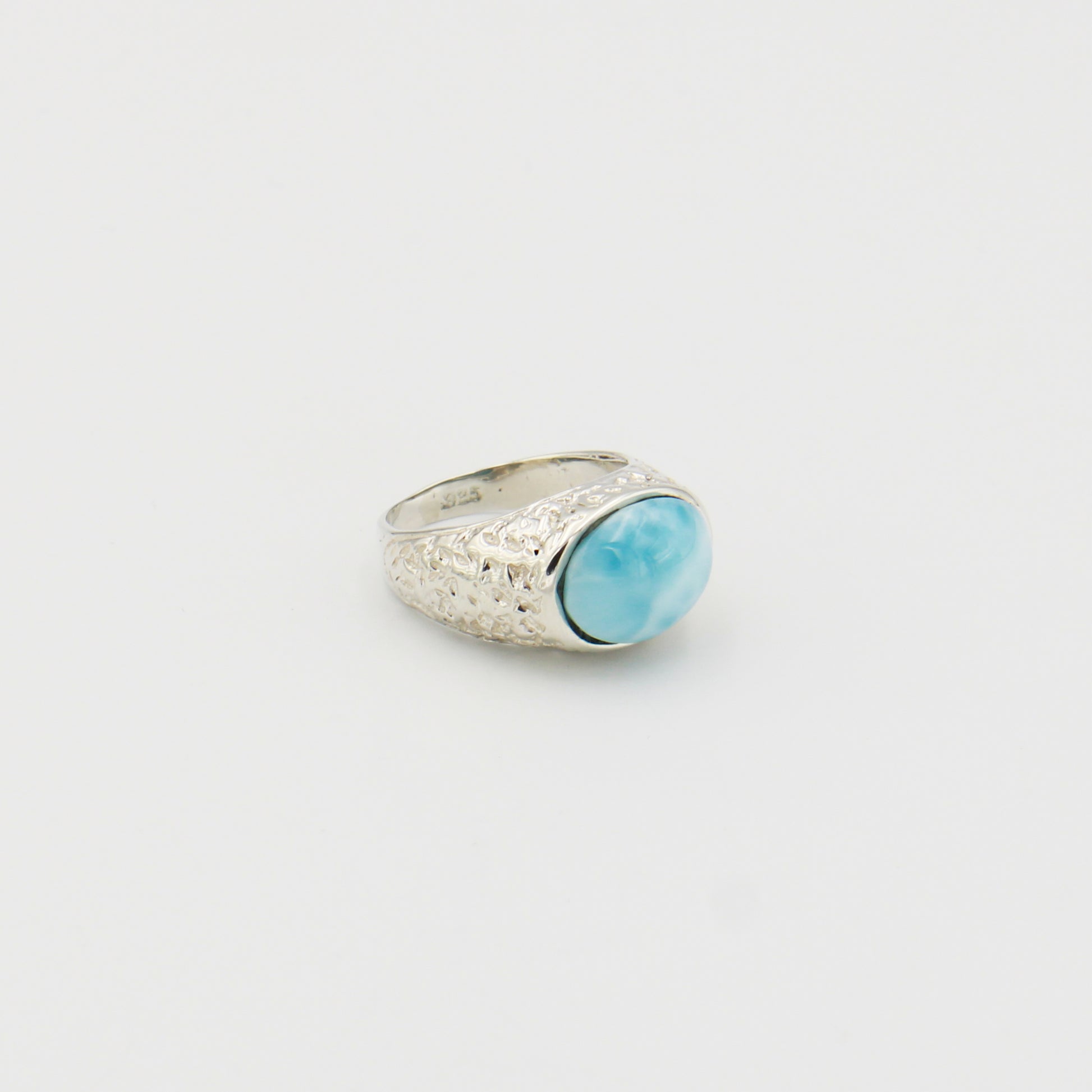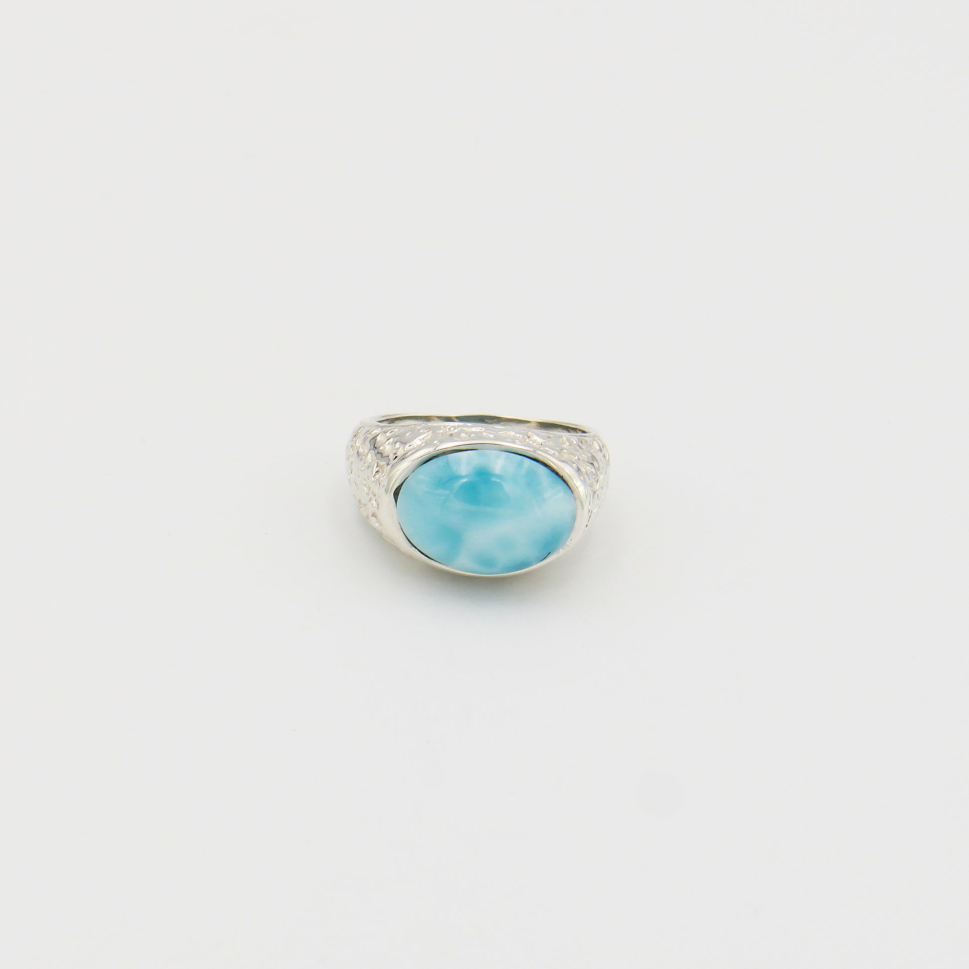 Larimar Wide Oval Textured Sterling Ring Sz 8