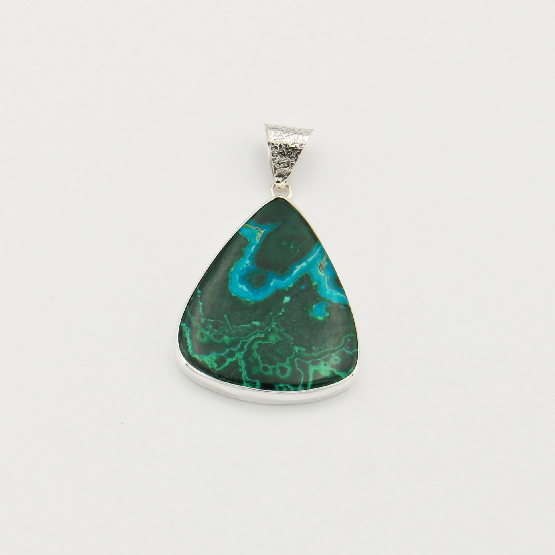 Malachite Chrysocolla Large Pear Sterling Pendant