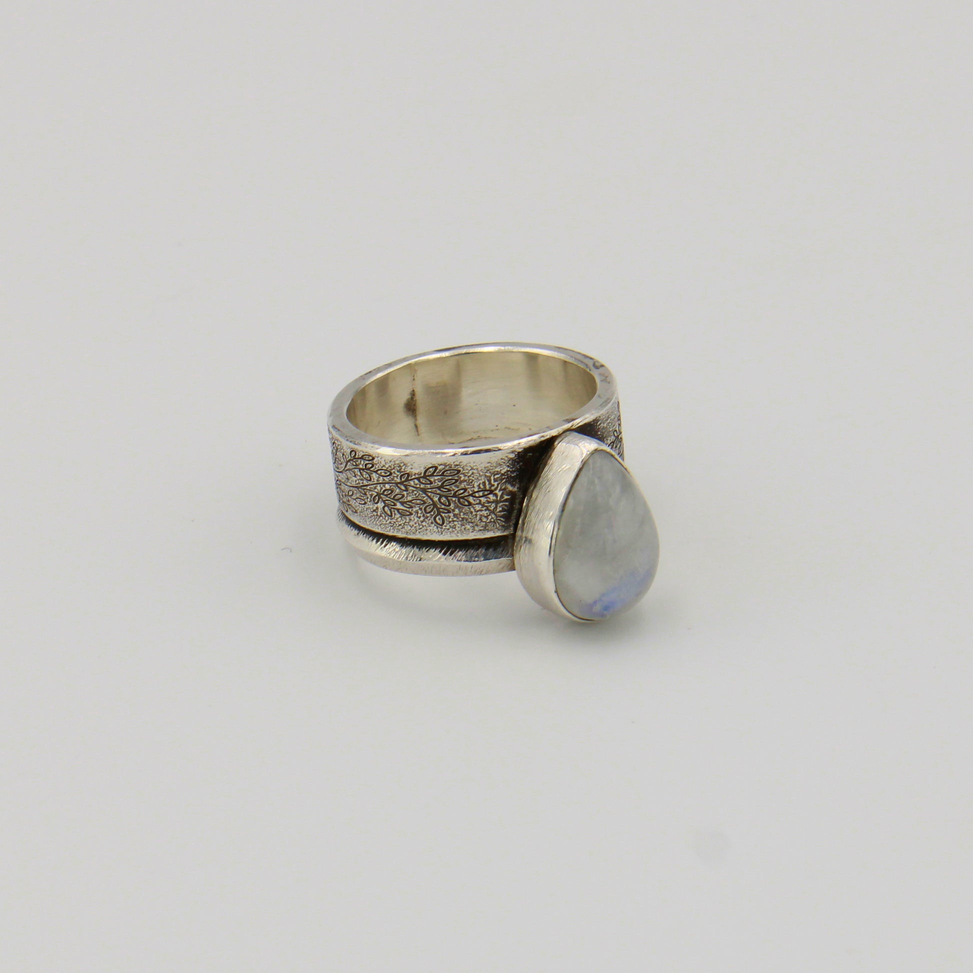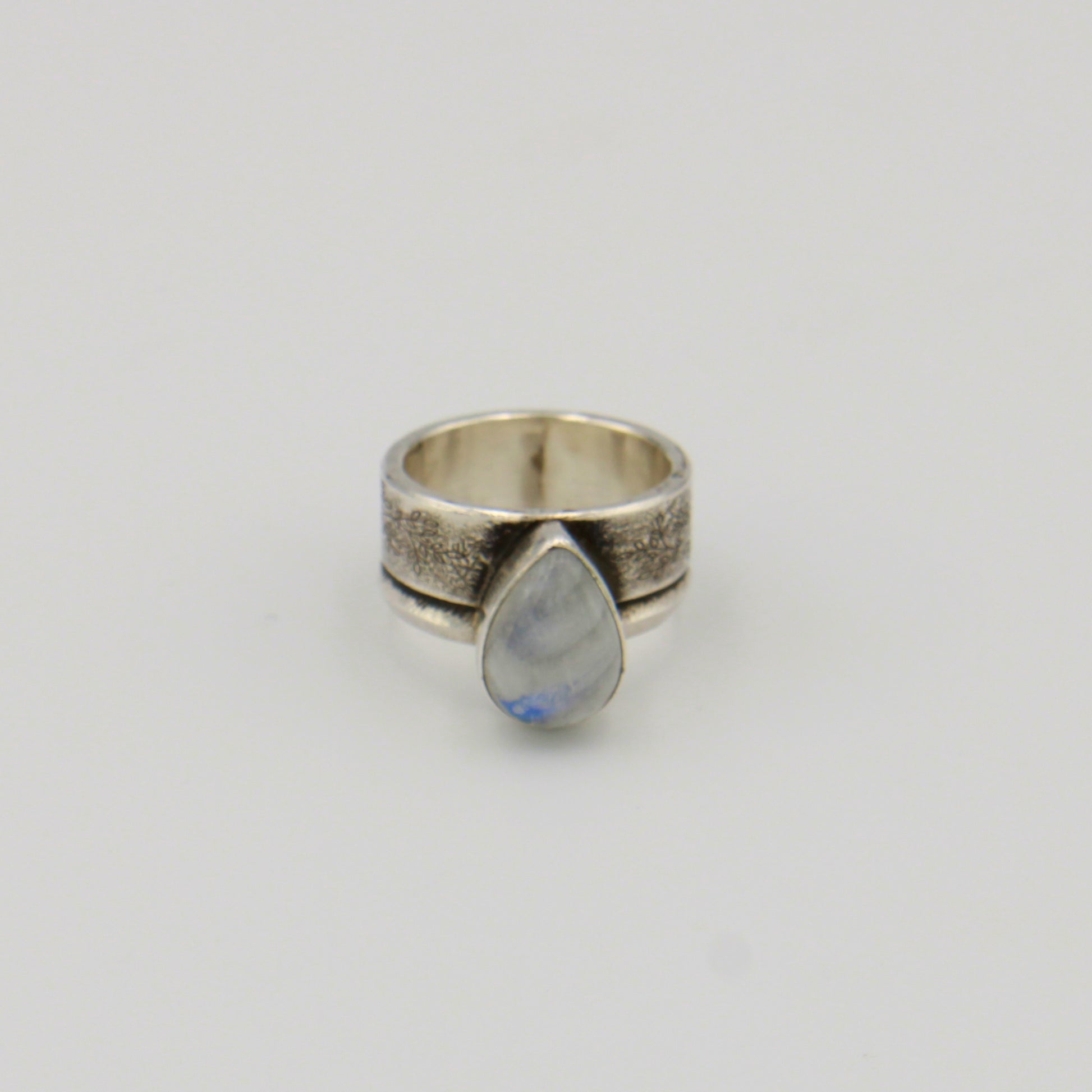 Moonstone Pear Wide Rustic Band Sterling Ring Sz 9