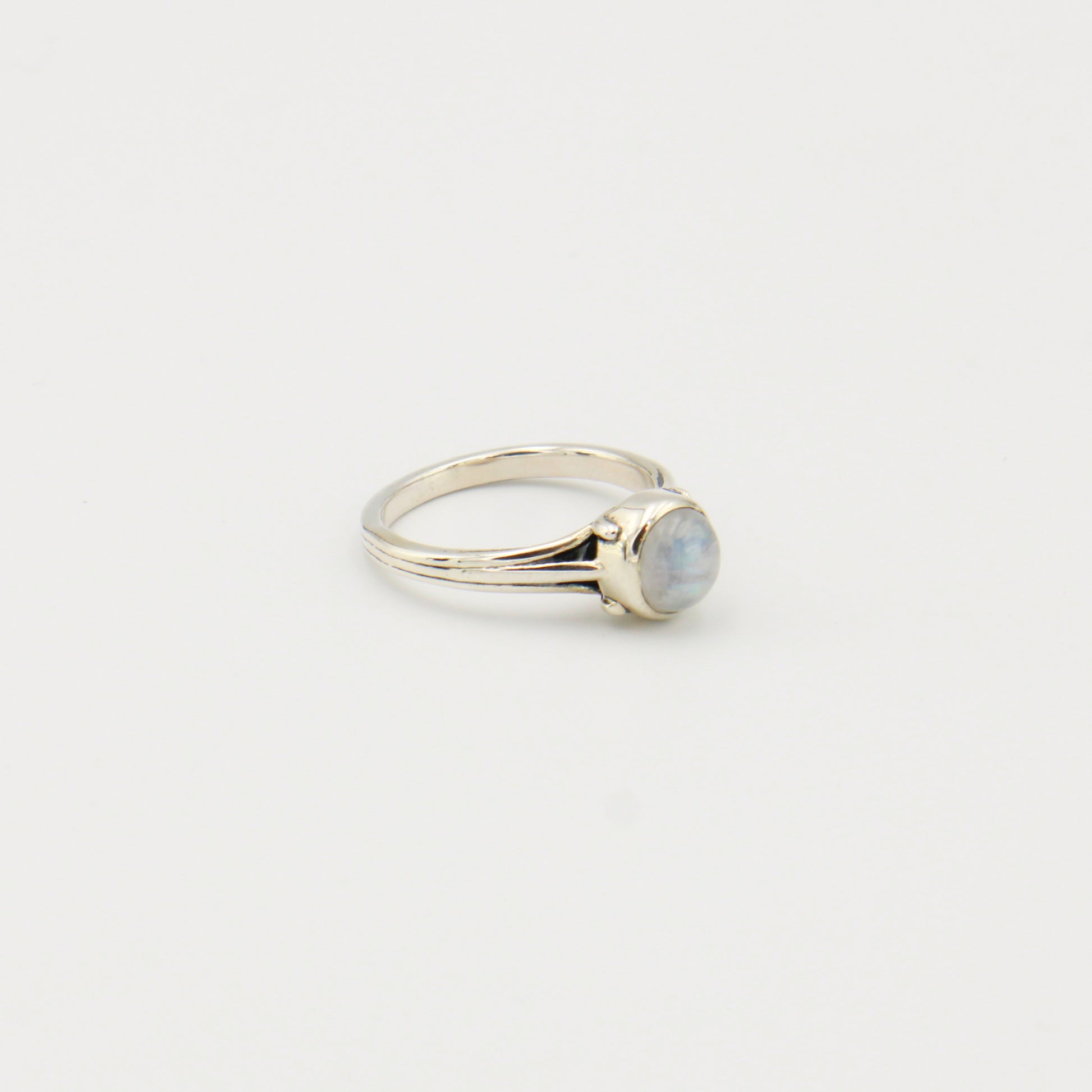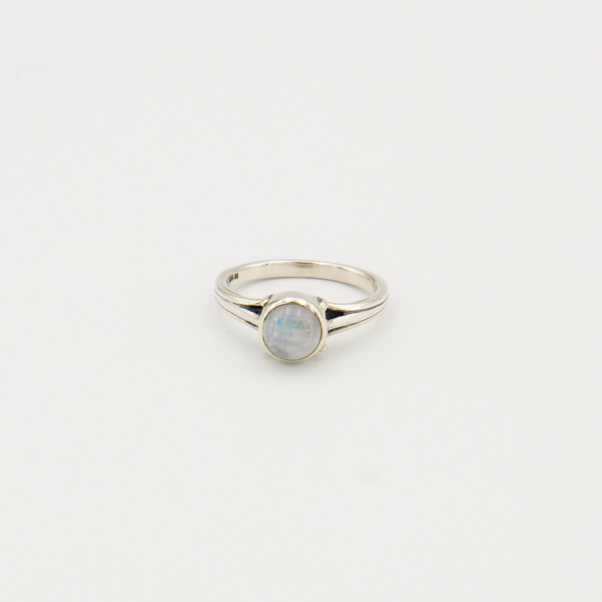 Moonstone Round Bezel Prong Sterling Ring Sz 8