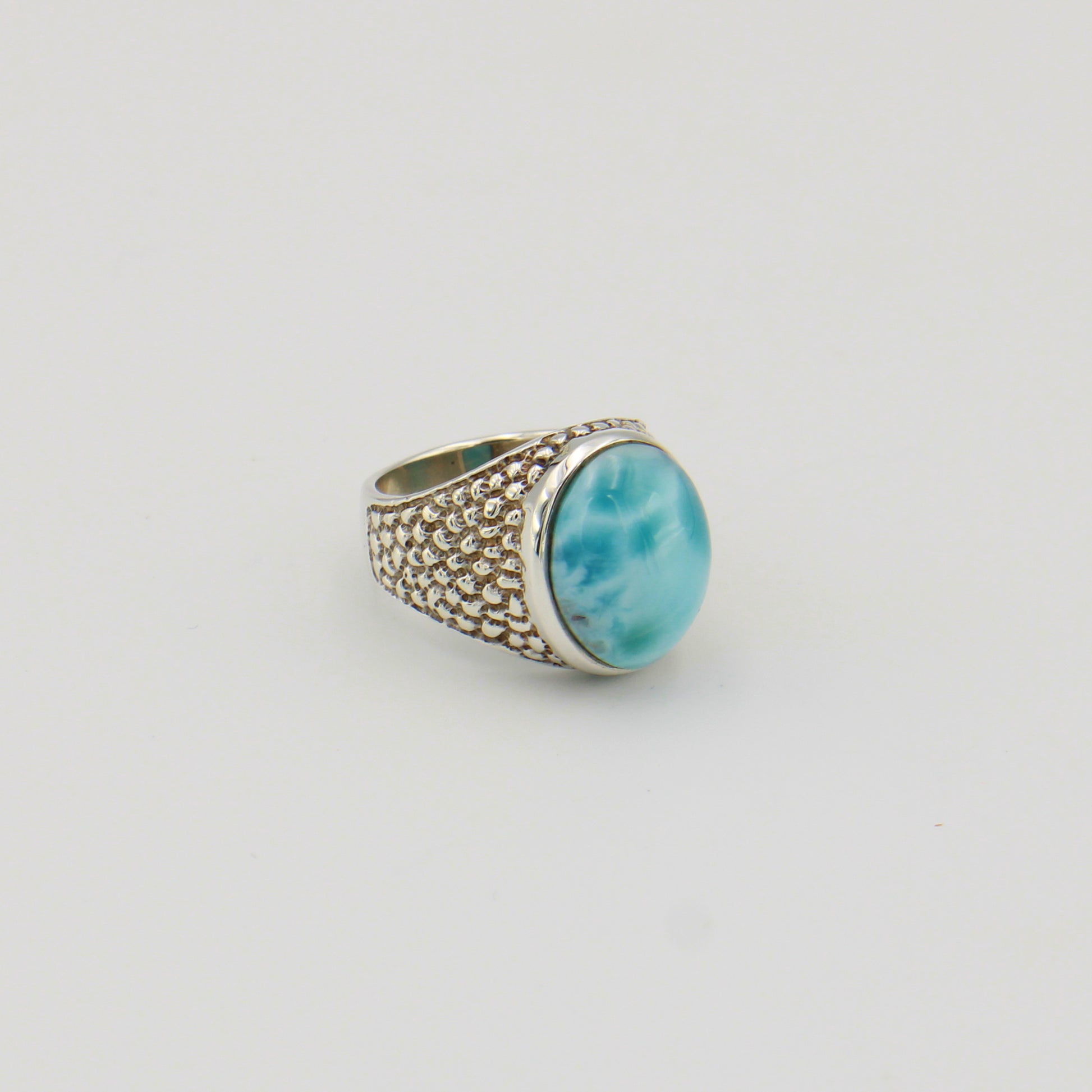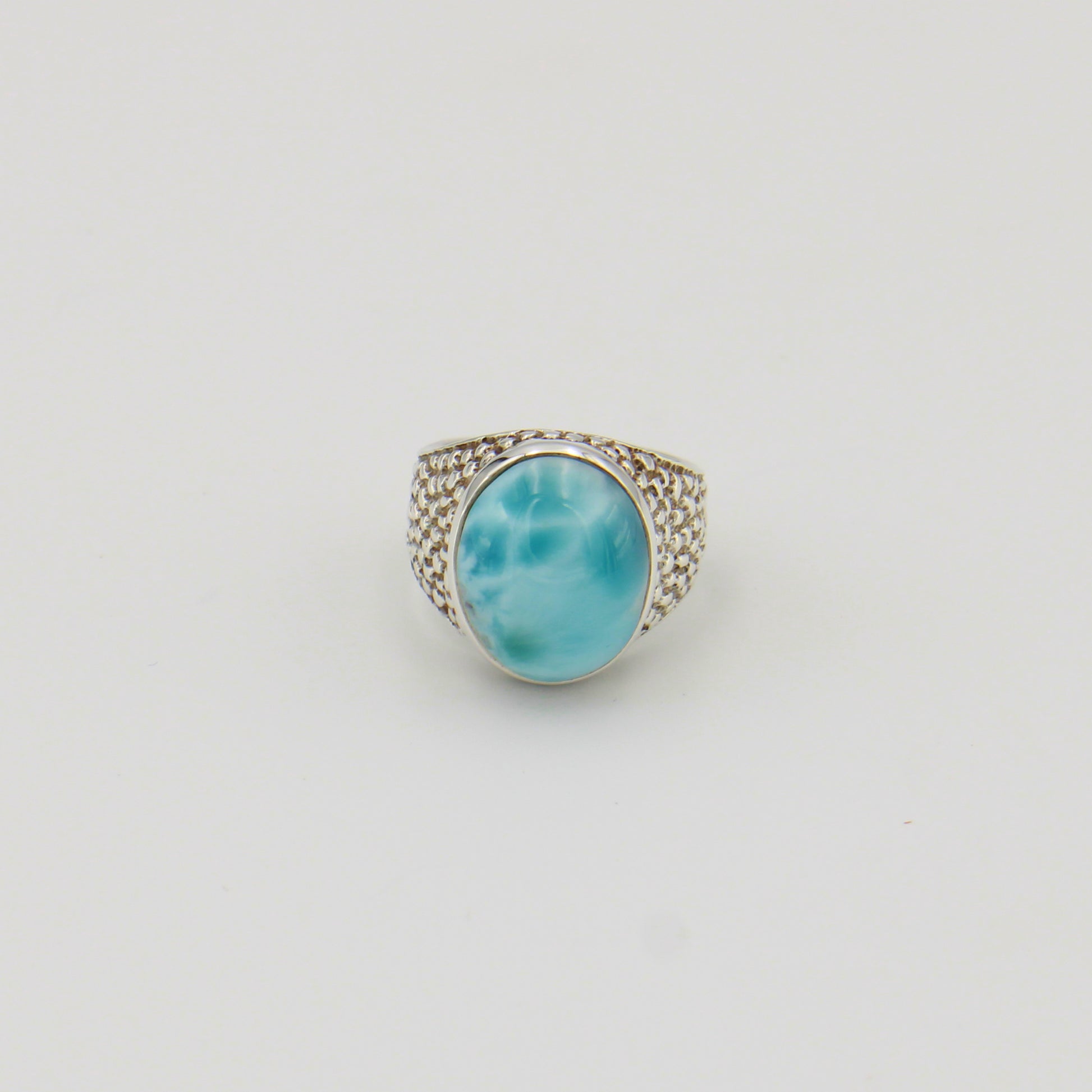Oval Larimar Pebbled Band Sterling Ring Sz 6