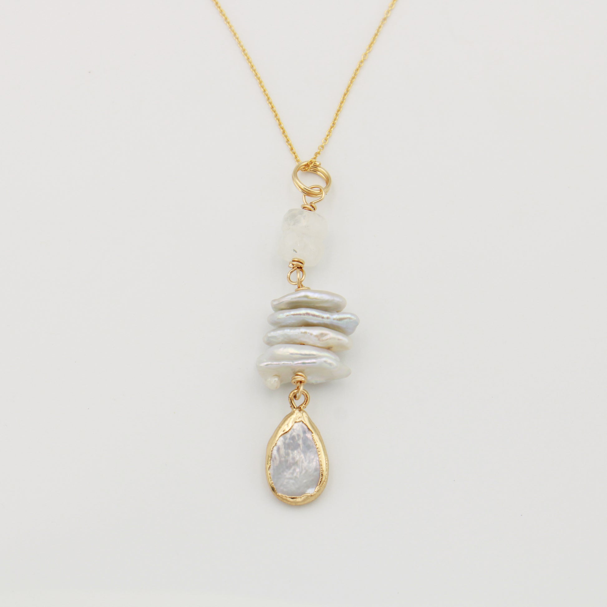 Pearl & Moonstone Gold Filled Necklace 18"