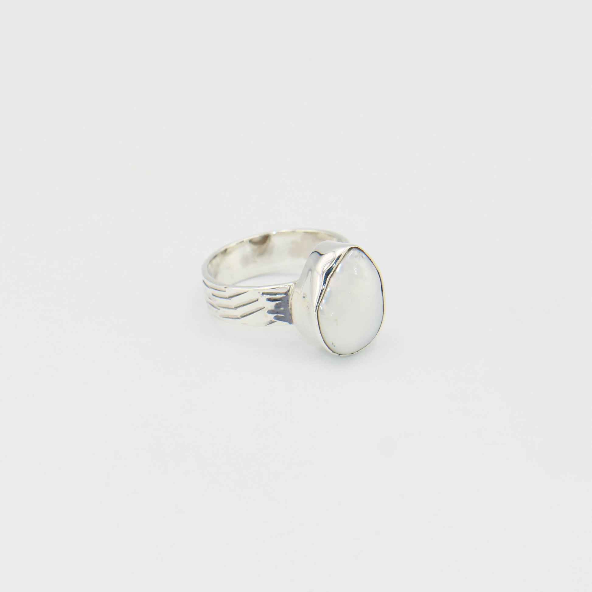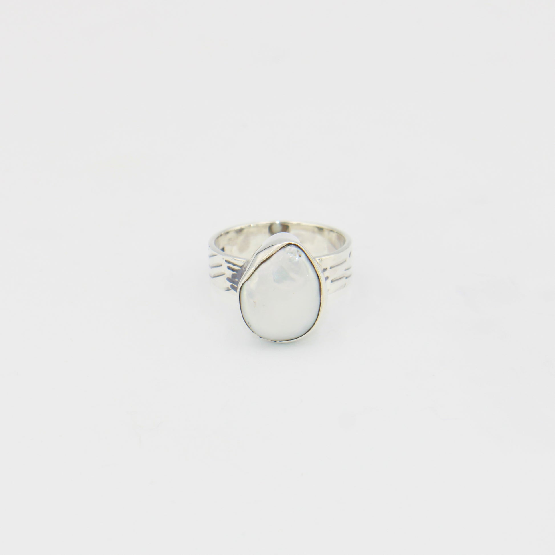 Pearl Pear Wide Band Sterling Ring Sz 8