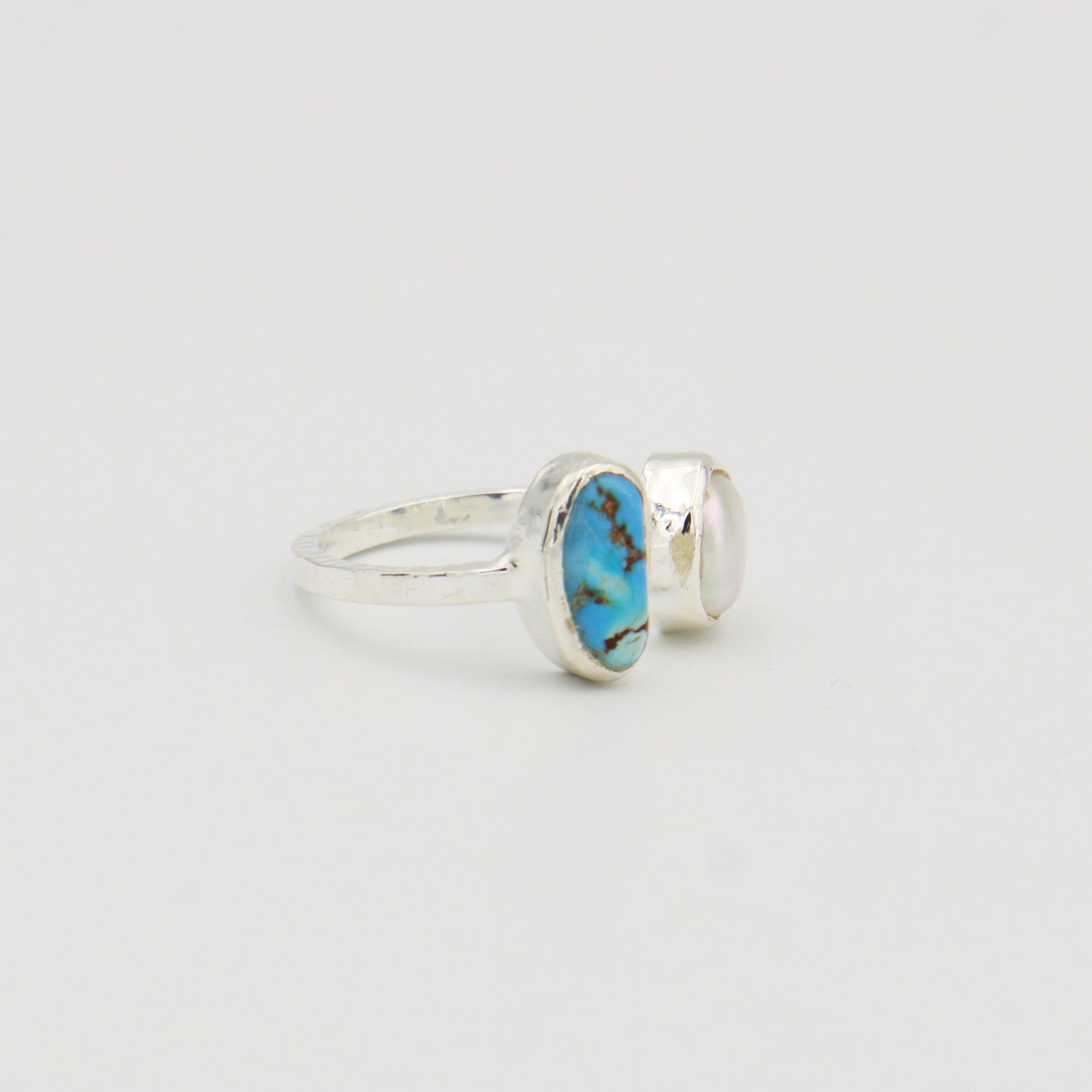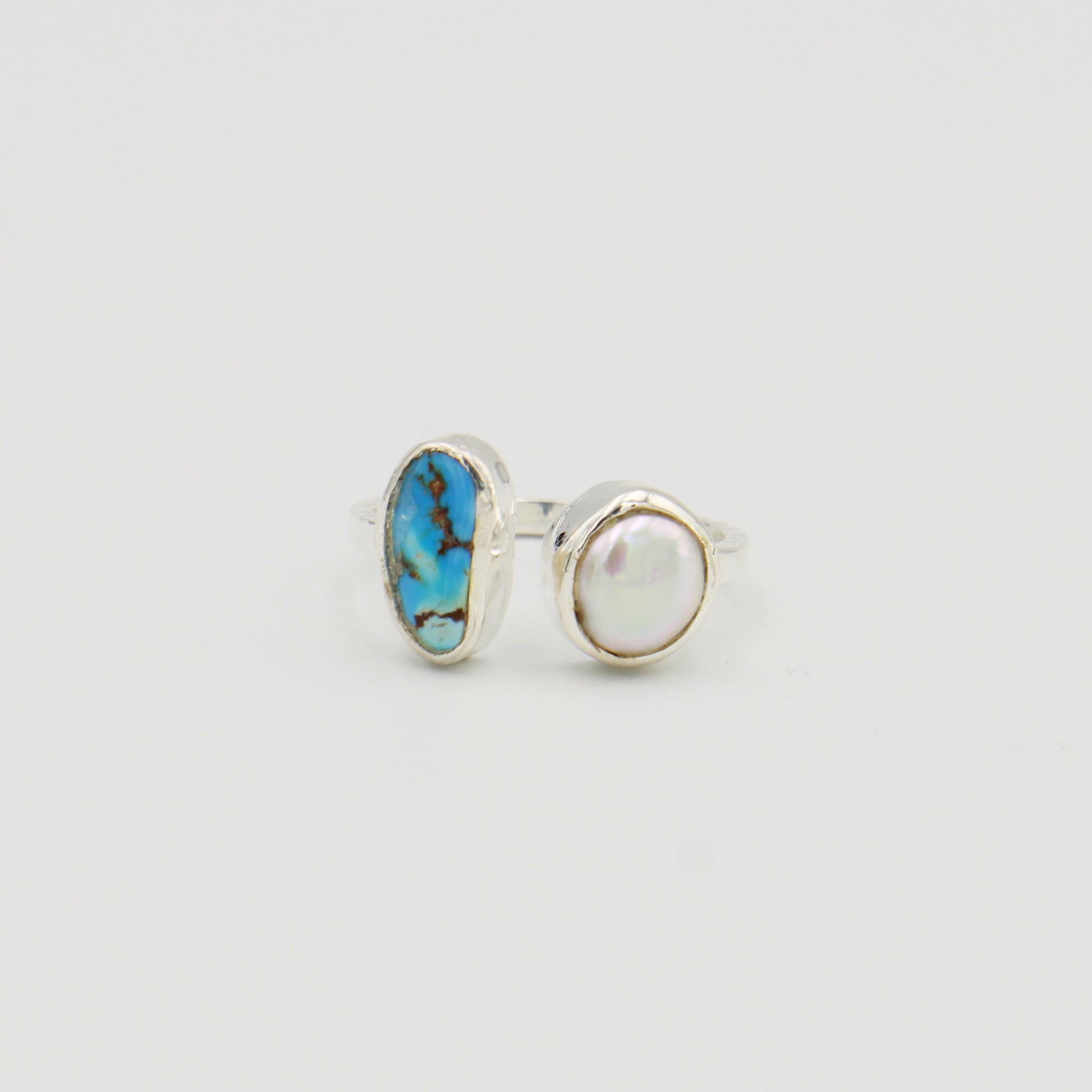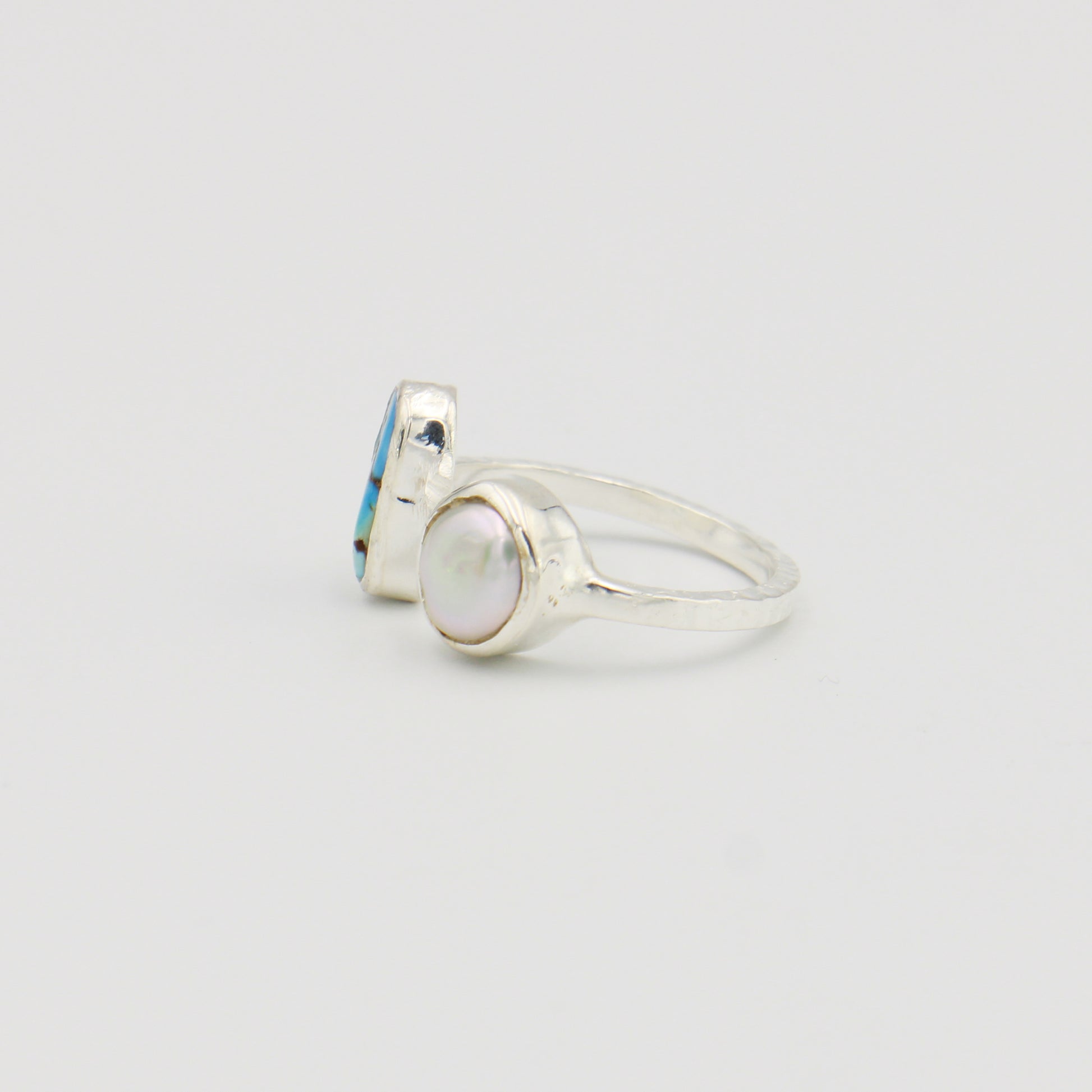 Pearl & Turquoise Sterling Ring Sz 8.75