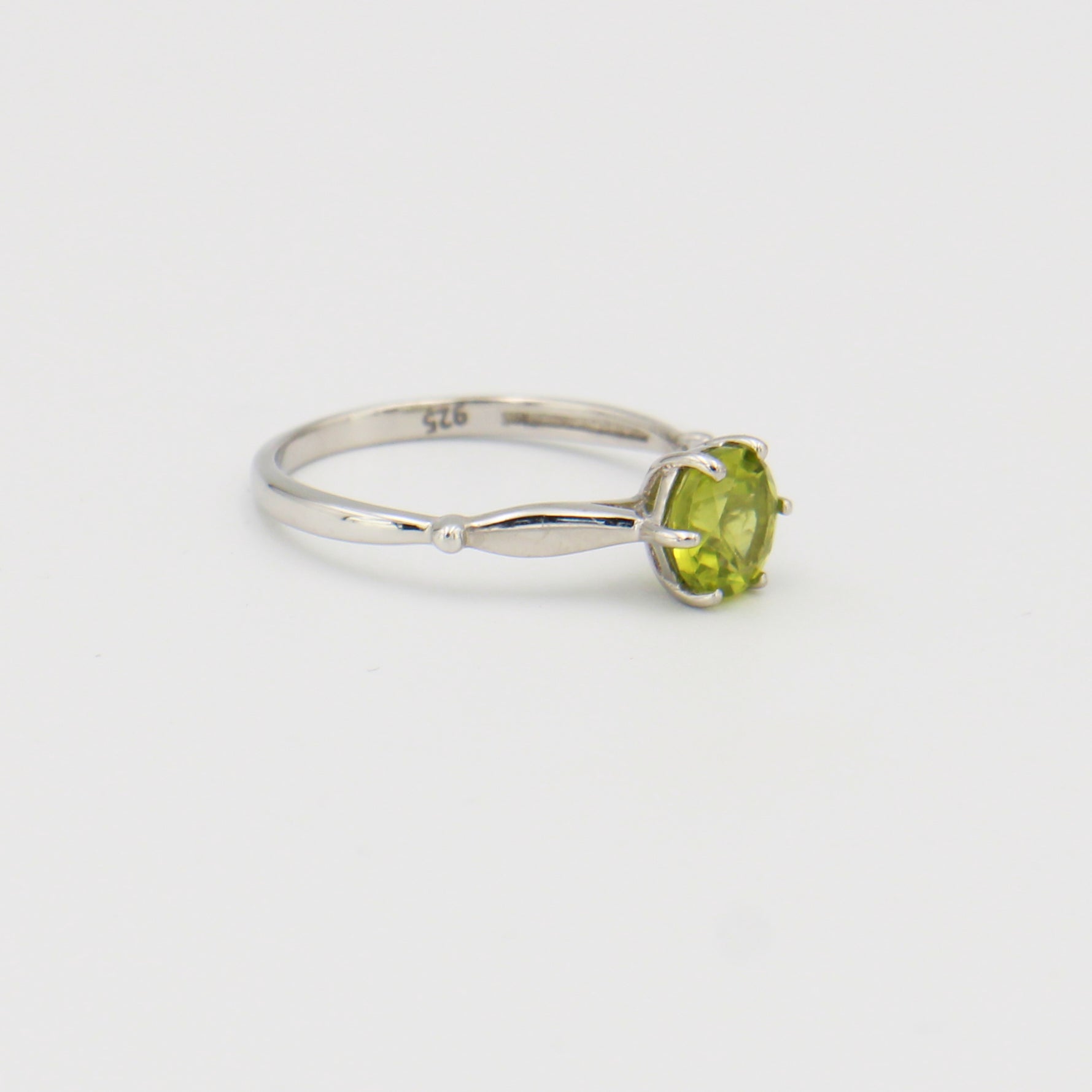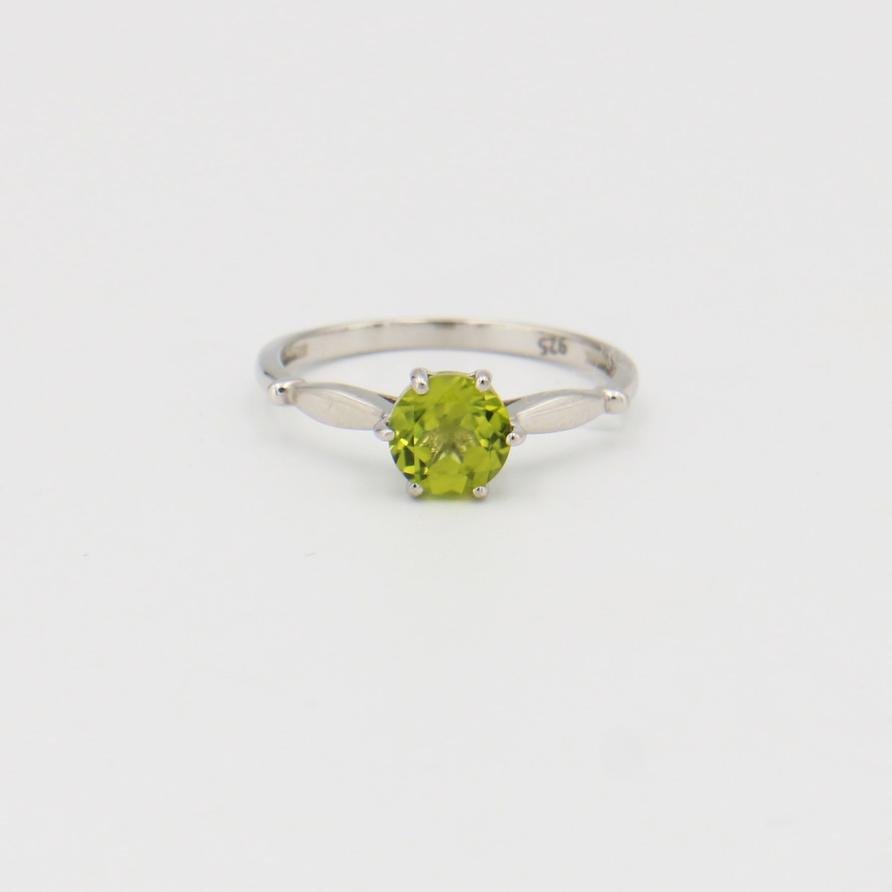 Peridot Round Six Prong Sterling Ring Sz 6