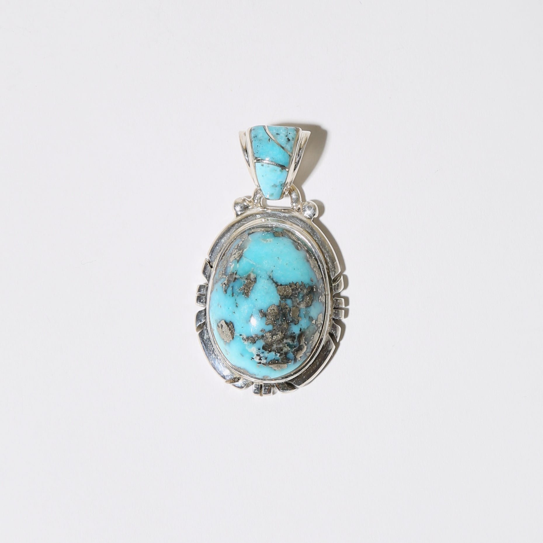 Persian Turquoise Oval Sterling Pendant w/ Turq Bale