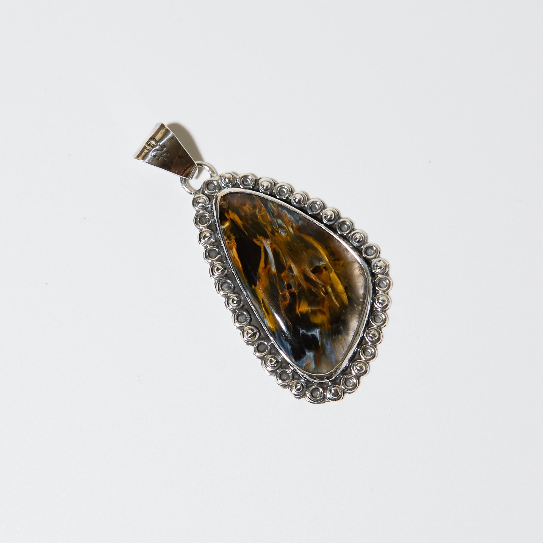 Pietersite Wedge w/ Circles & Dots Sterling Pendant