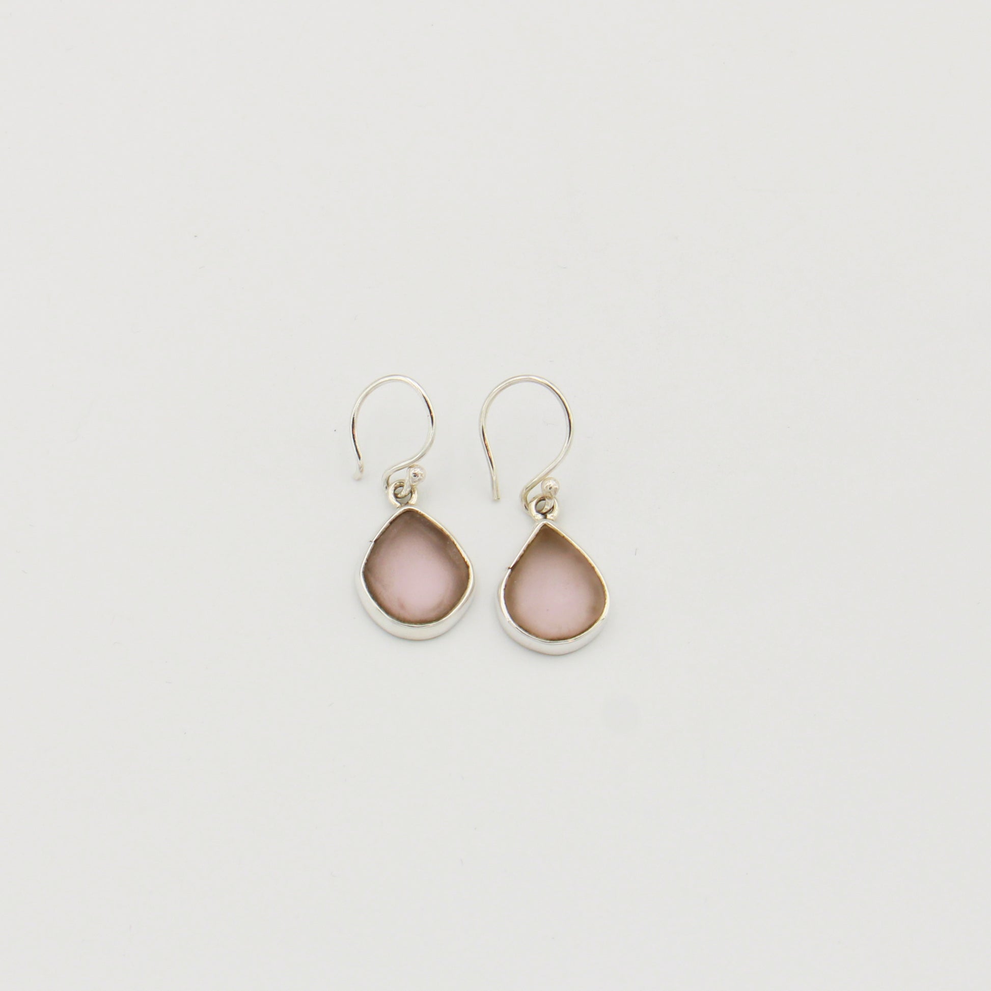 Pink Beach Glass Pear Sterling Earrings
