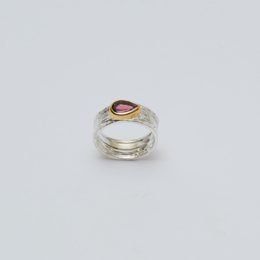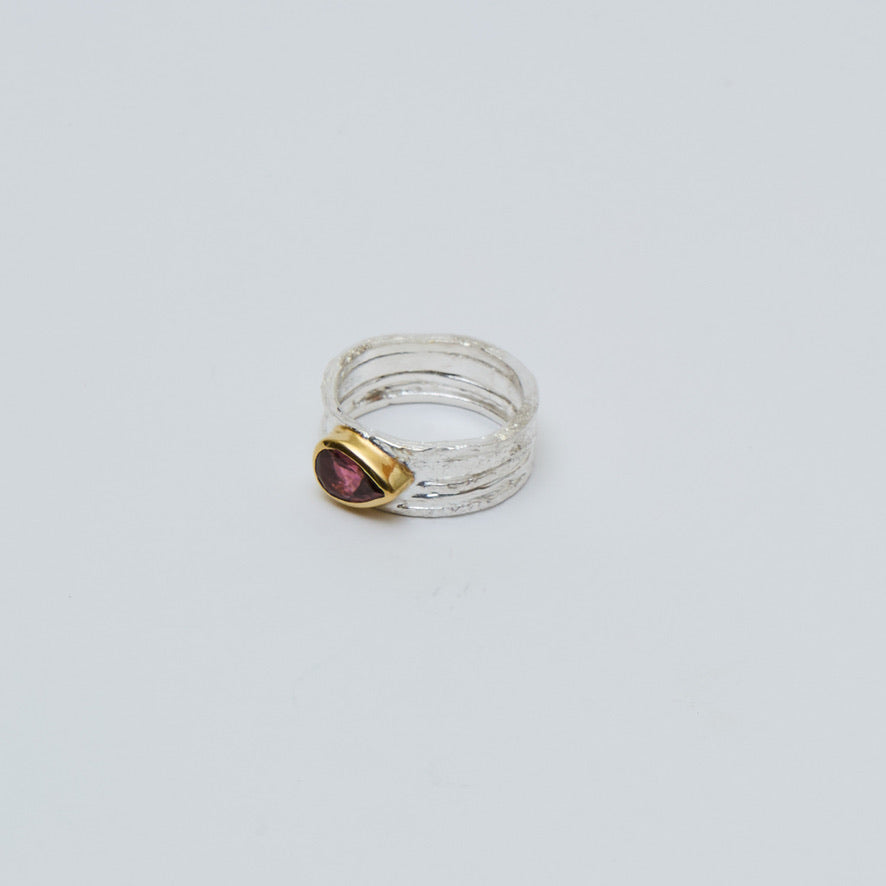 Pink Tourmaline GP Wide Sterling Ring Sz 8