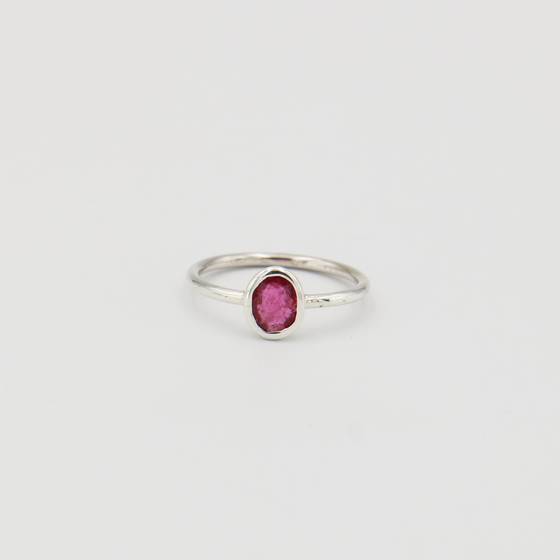 Pink Tourmaline Small Oval Sterling Ring Sz 8