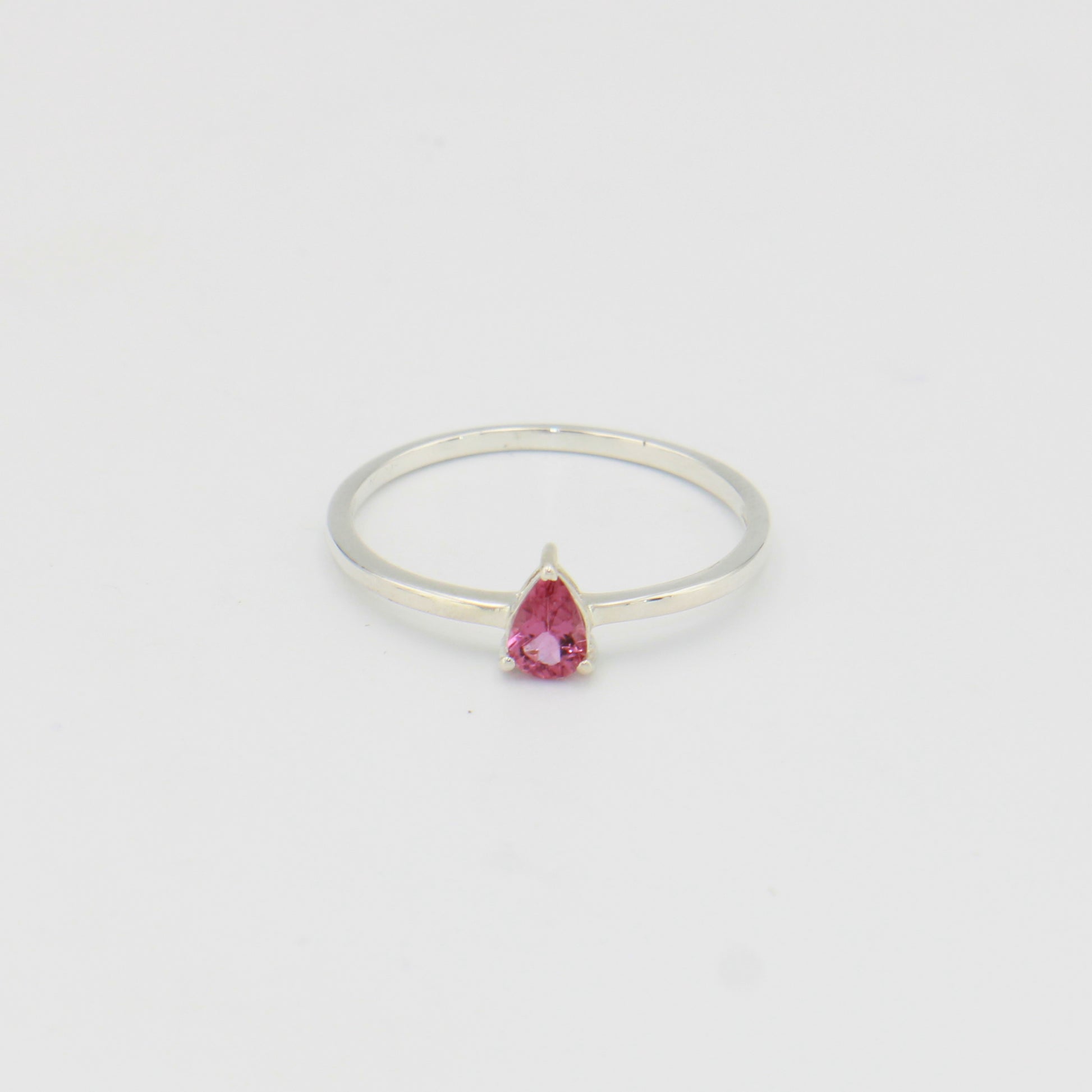 Pink Tourmaline Tiny Teardrop Sterling Ring Sz 10