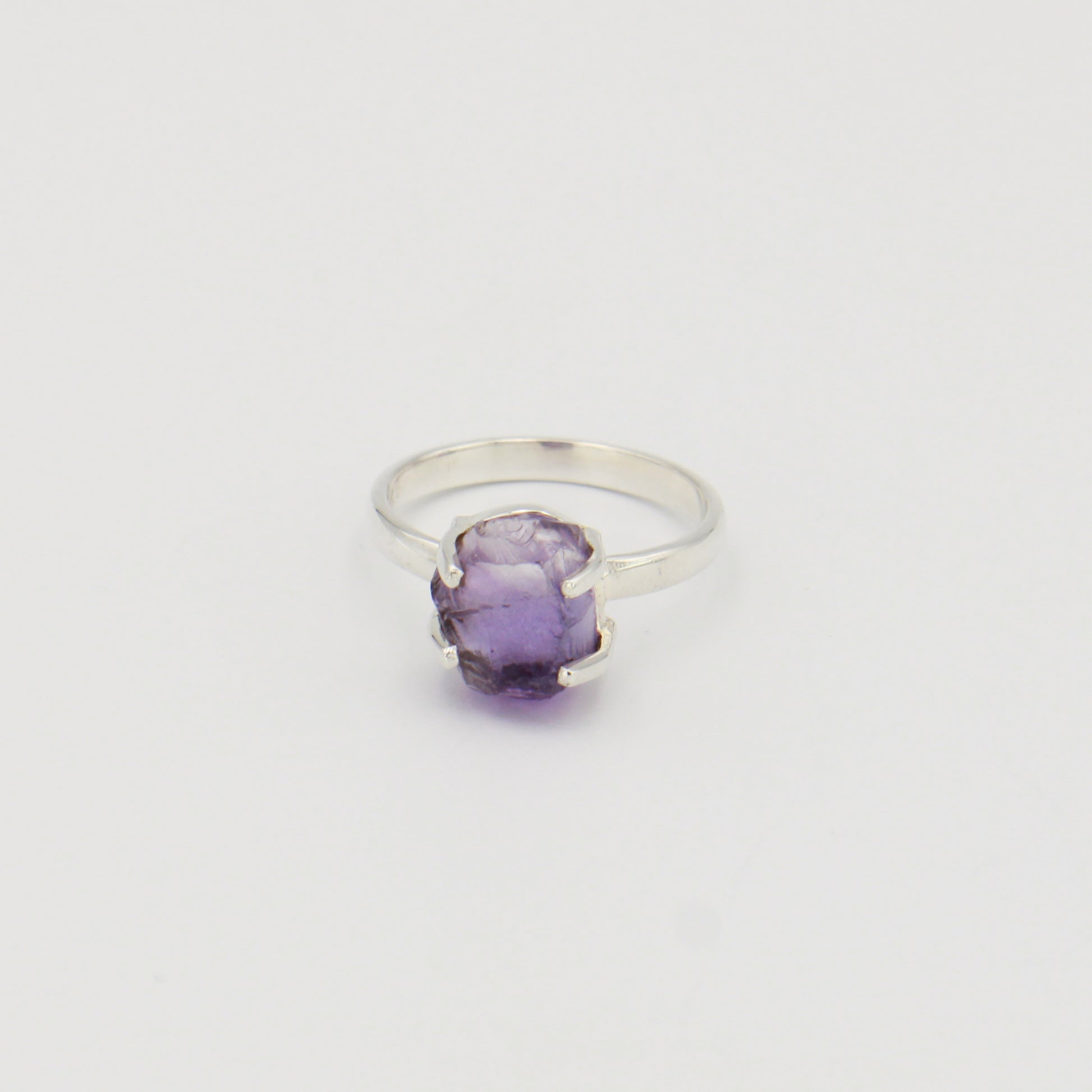 Raw Amethyst Prong Sterling Ring Sz 8