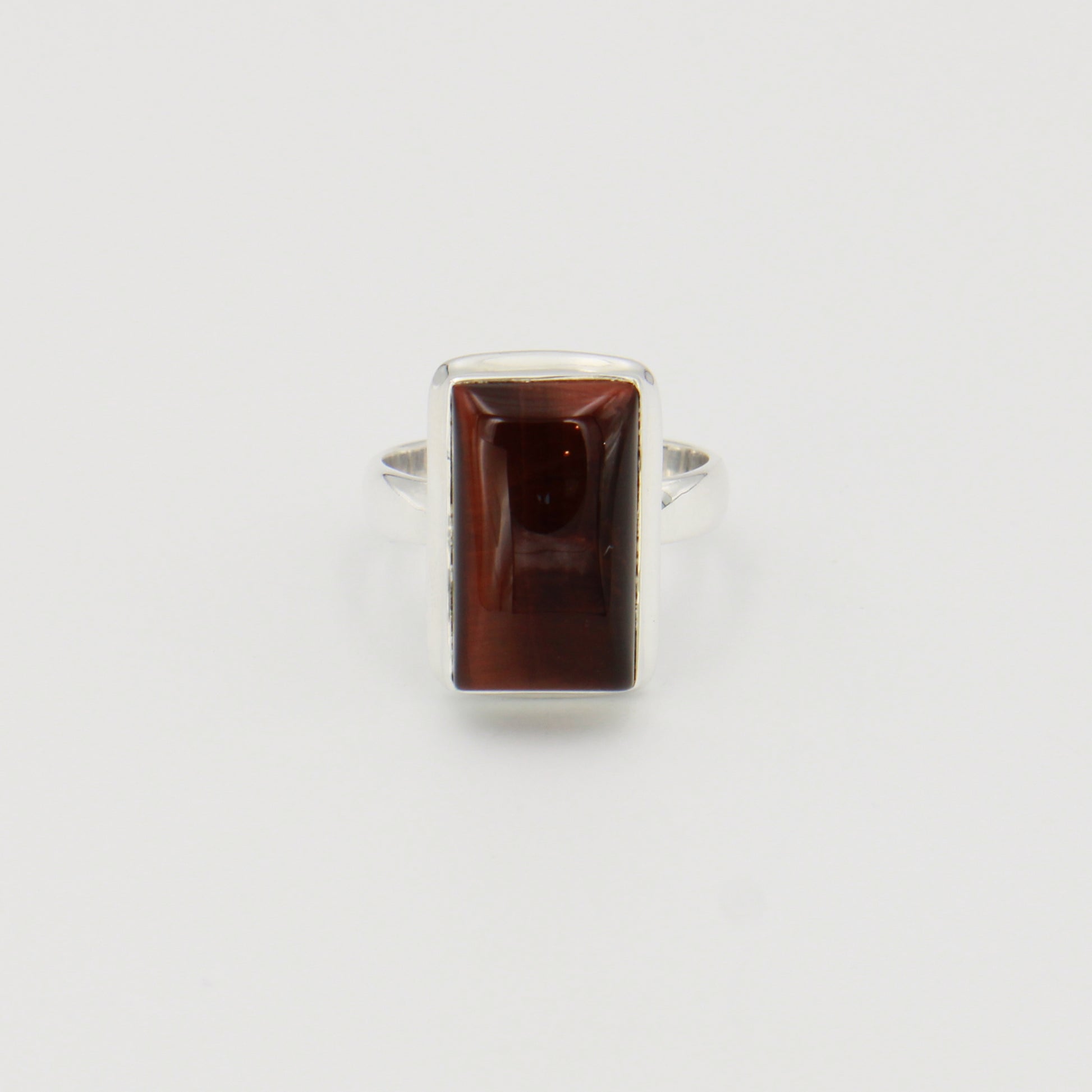 Red Tiger Eye Rectangle Sterling Ring Sz 8