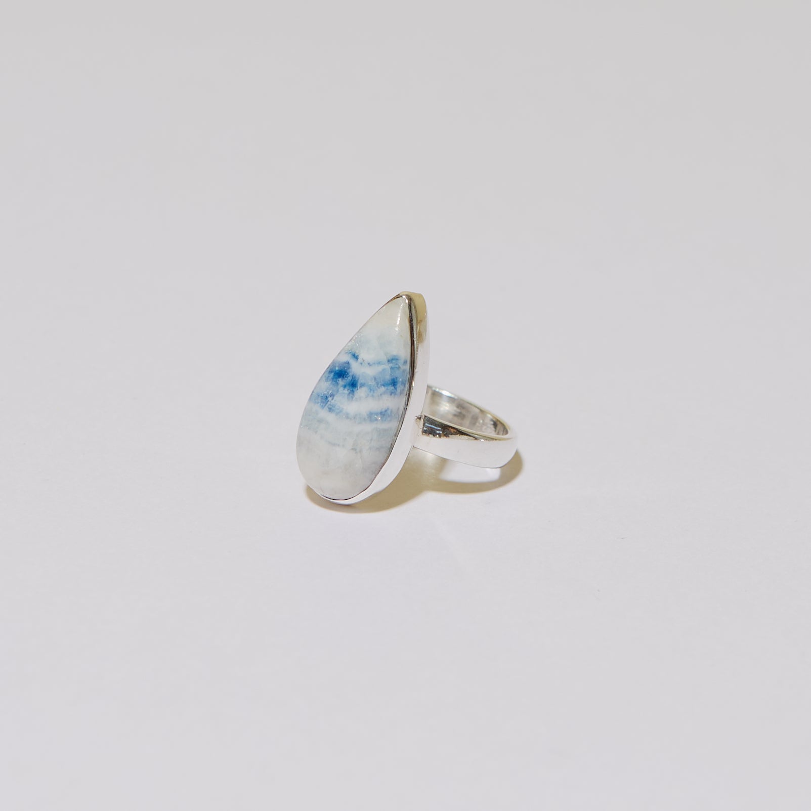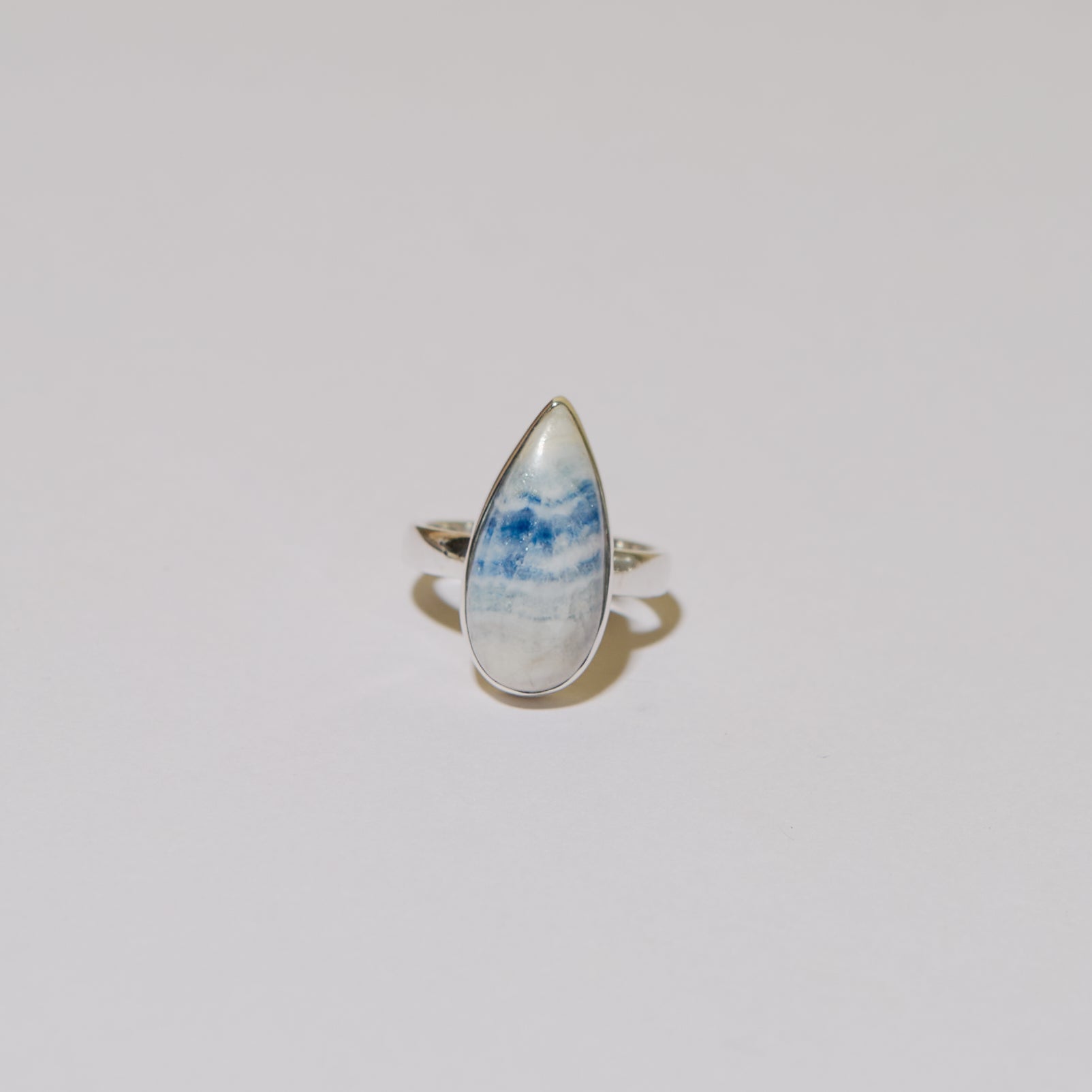 Scheelite teardrop ring crafted in sterling silver, sized 7. This elegant piece features a scheelite stone cut into a graceful teardrop shape, set securely in polished sterling silver. Perfect for everyday wear or special occasions, the timeless design complements any style. A beautiful addition to your jewelry collection.