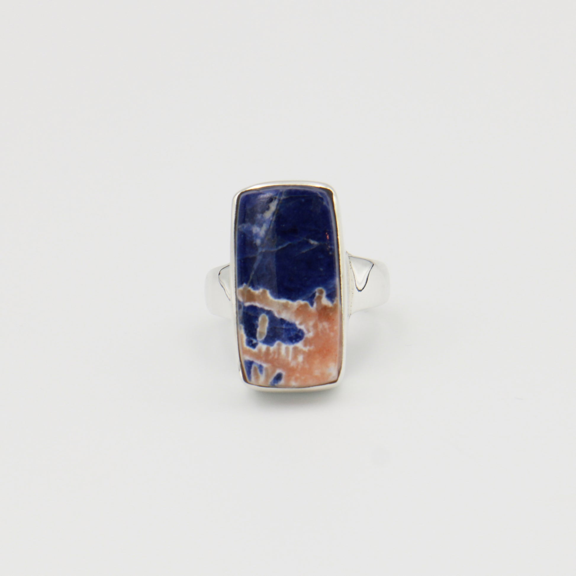 Sodalite Rectangle Sterling Ring Sz 7.5