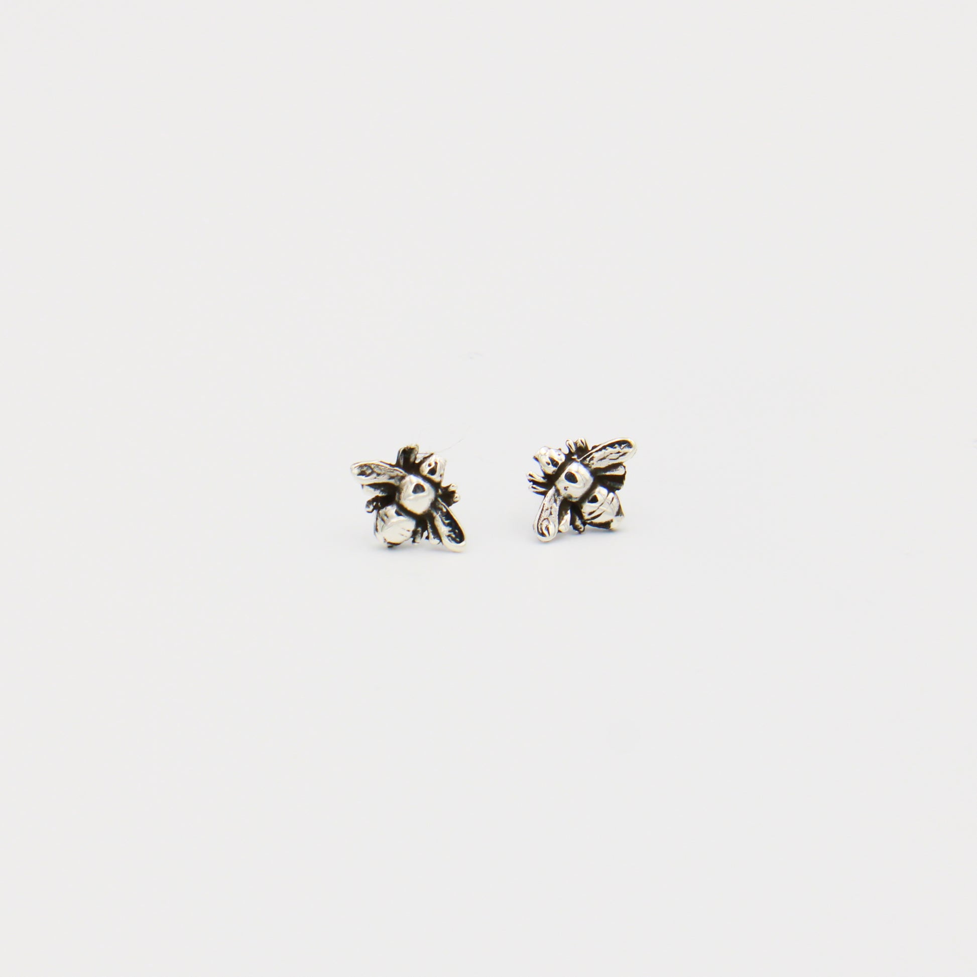 Rustic sterling silver studs created in the shape of bumble bees. Sterling silver posts.