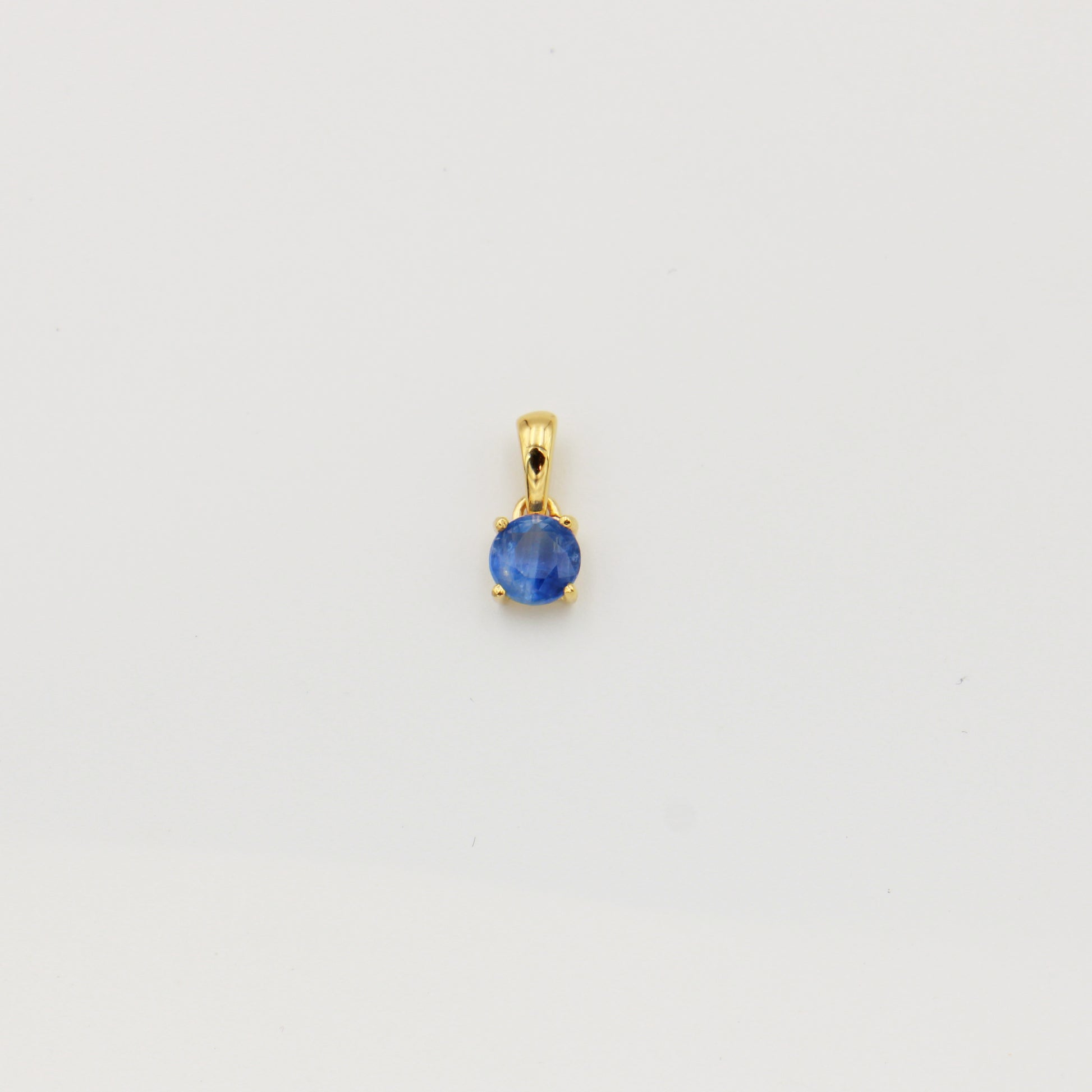Delicate round kyanite stone set in gold plated sterling silver. This tiny pendant captures the natural blue beauty of kyanite in a minimalist design. Adding a touch of elegance to any jewelry collection.