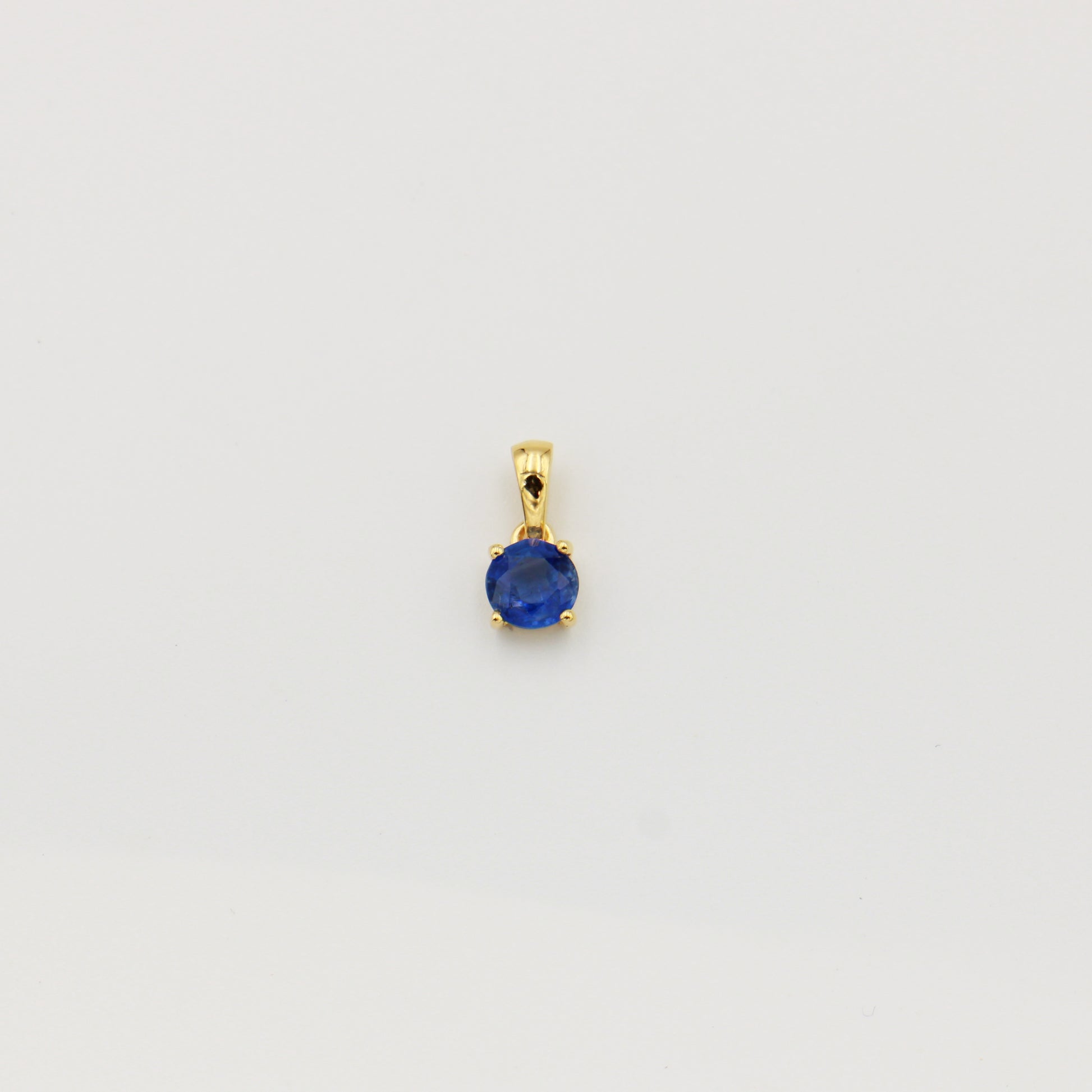 Delicate round kyanite stone set in gold plated sterling silver. This tiny pendant captures the natural blue beauty of kyanite in a minimalist design. Adding a touch of elegance to any jewelry collection.