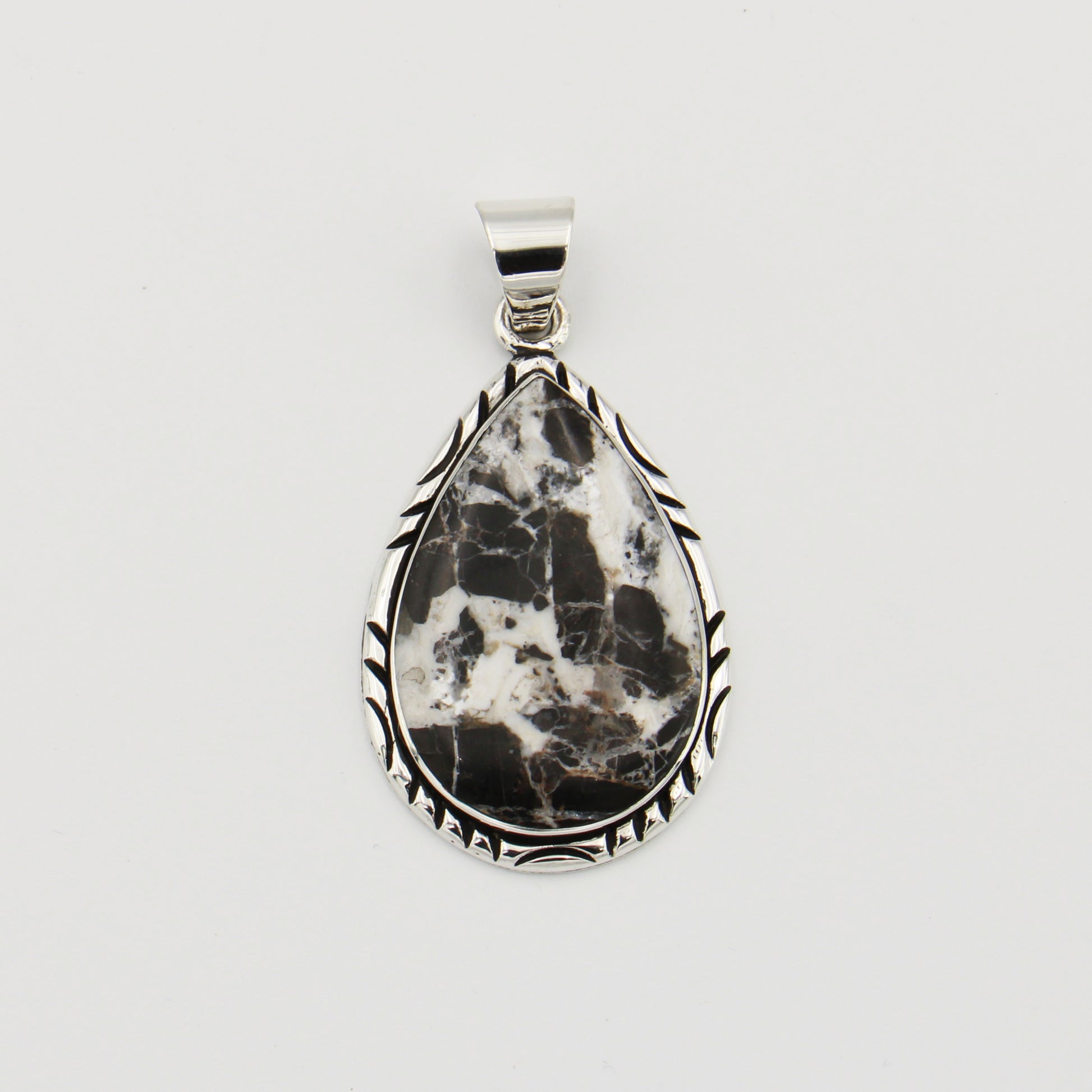 White Buffalo Large Pear Sterling Pendant
